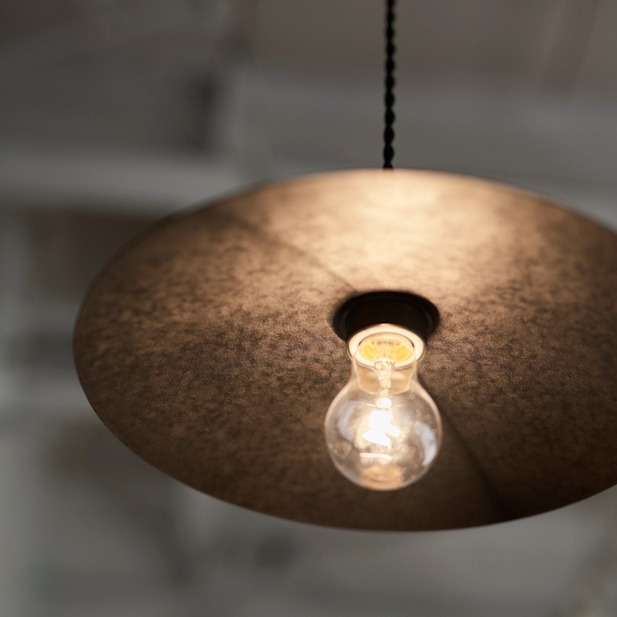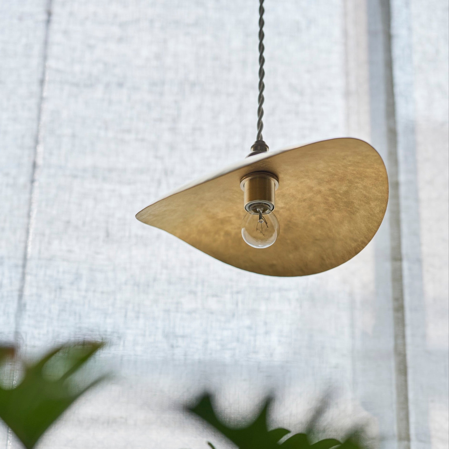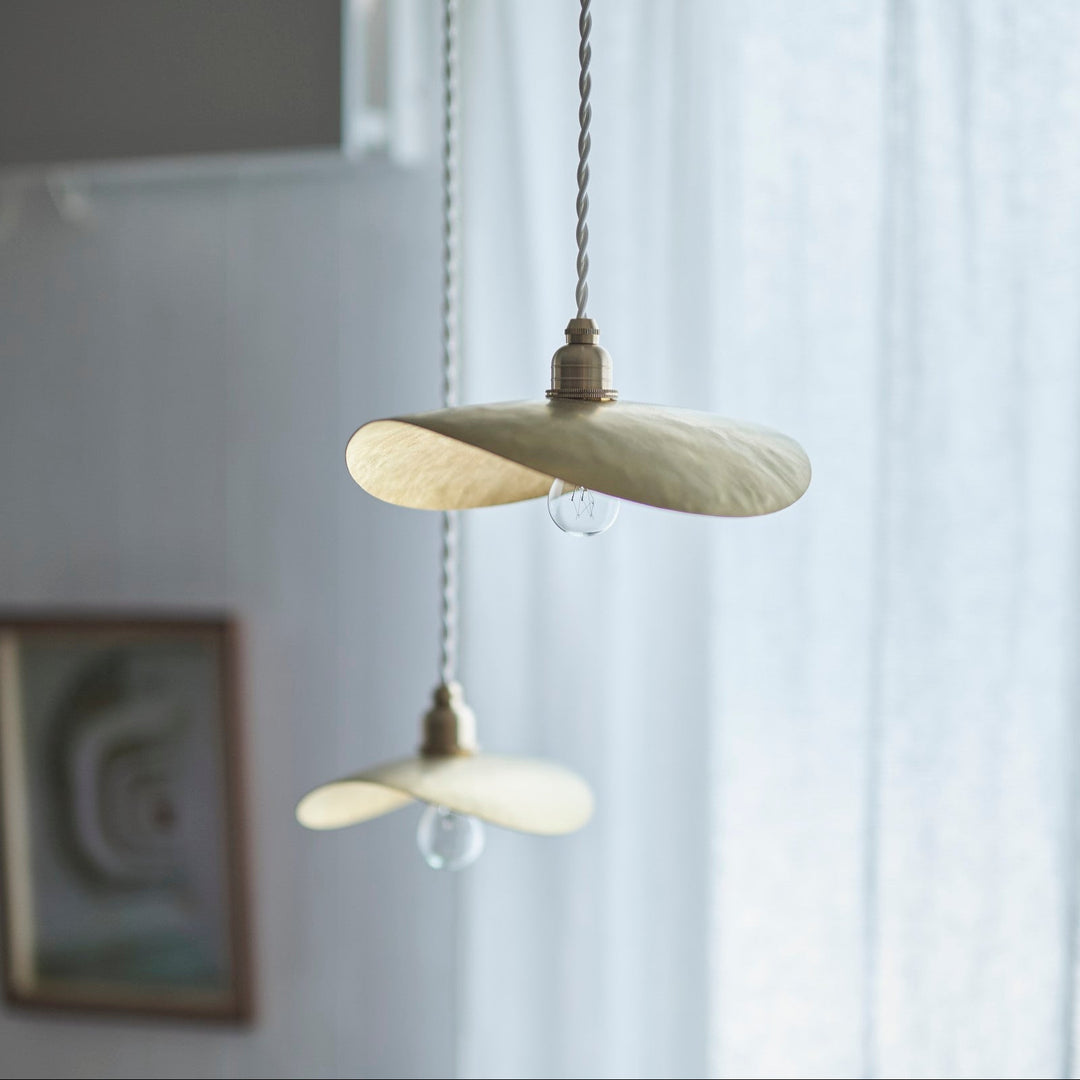 最大の魅力は、使い込むほどに深みを増す経年変化。新品の輝きから始まり、時間とともに落ち着いた飴色へと変化していく様子は、まさに「育てる照明」と言えます。