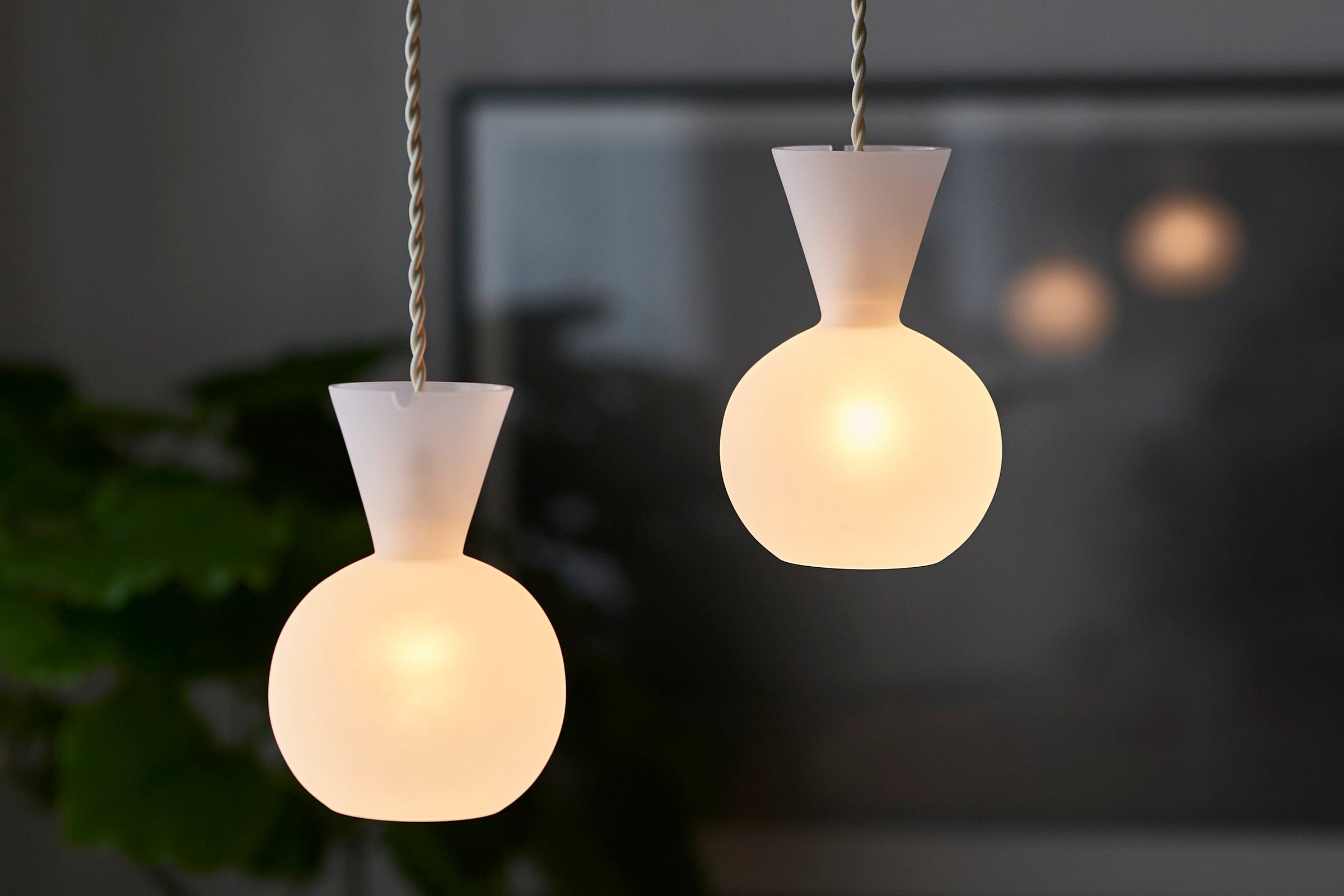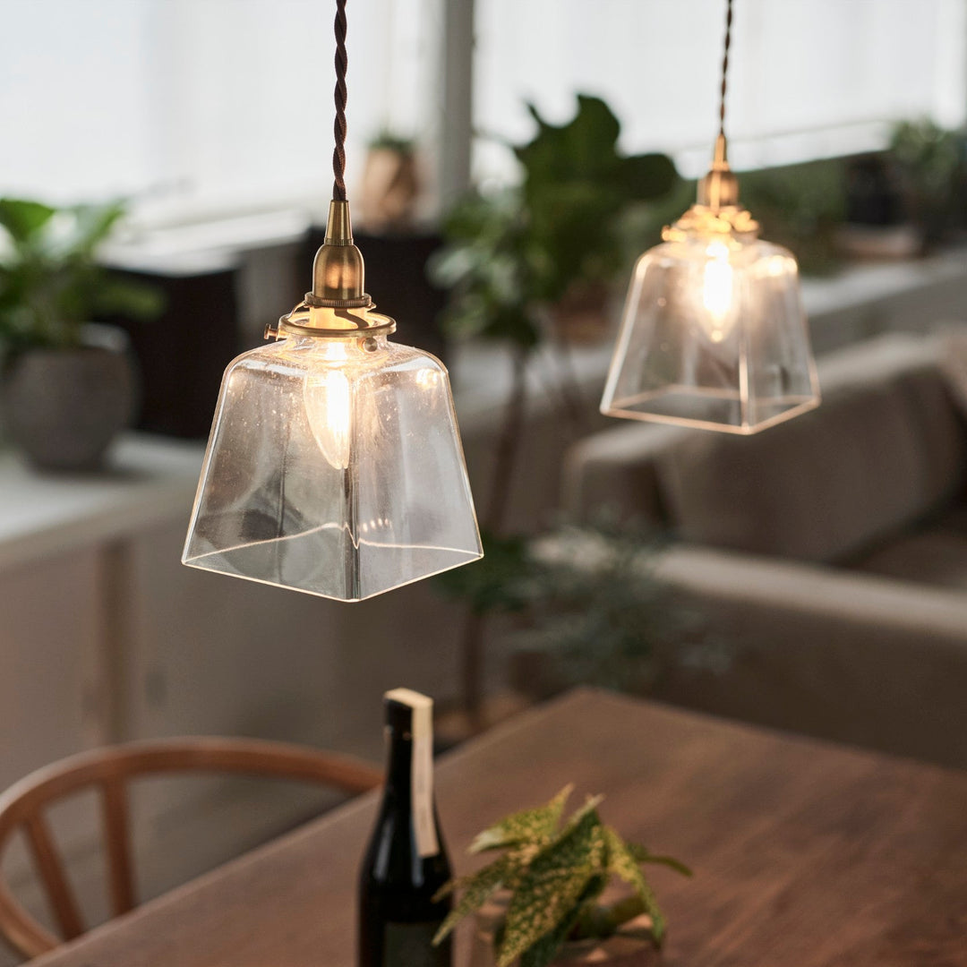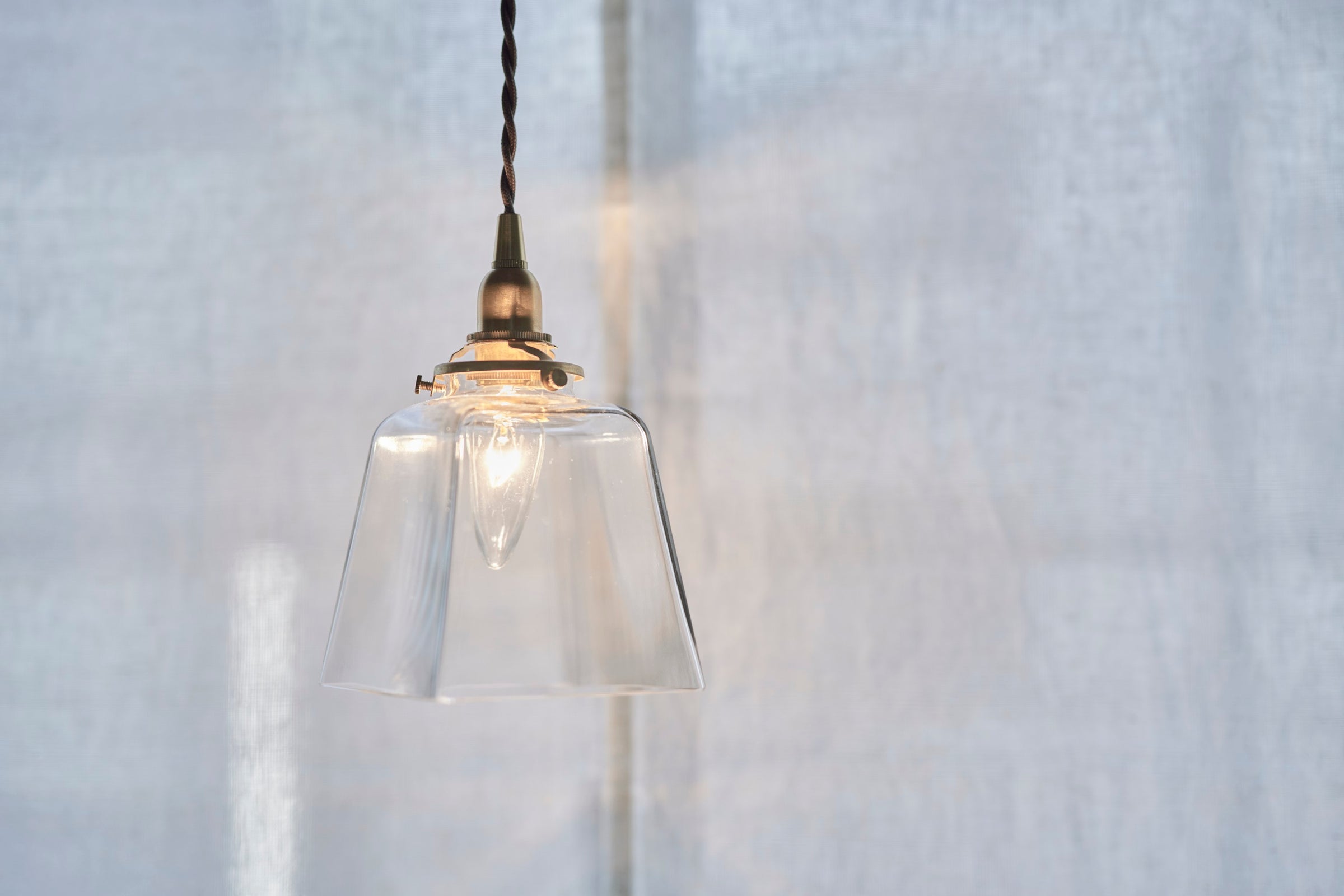 ガラス製の照明は、光をさえぎらず周囲に明るさを広げるのが最大の特徴。