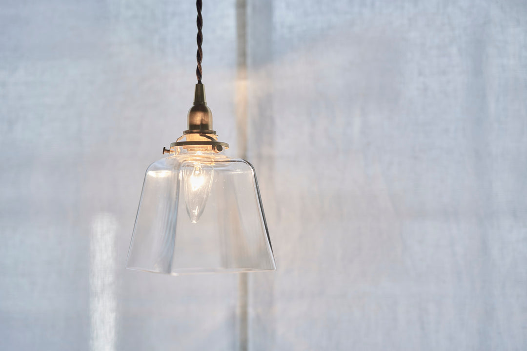 昼間は透明に、夜は光をまとうように。ガラスシェードの照明は、空間に澄んだ空気を通すような軽やかさをもたらします。