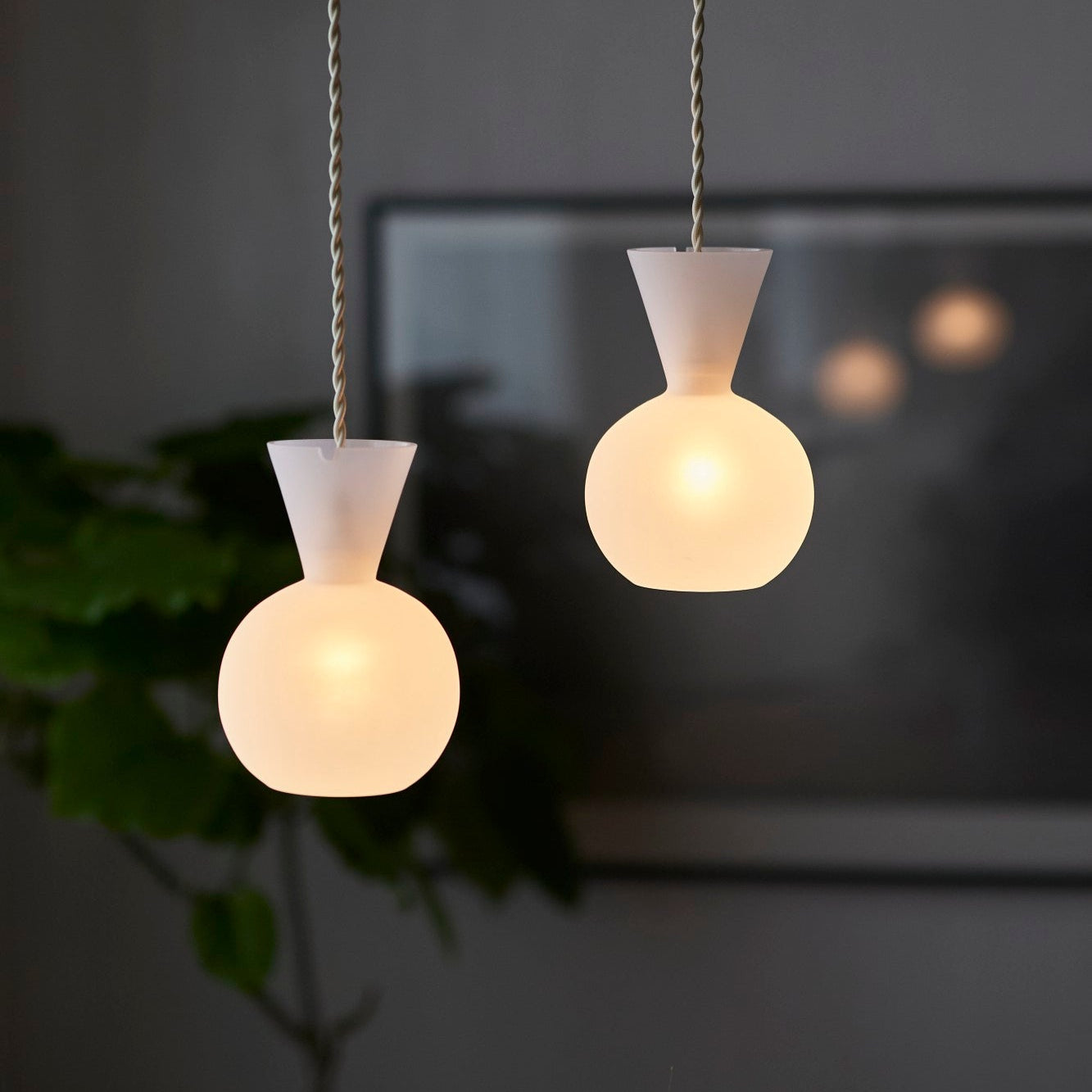 通行の妨げにならない場所や、小さなサイズのものであれば、低めの位置に吊るして間接照明のように使うのもひとつ。