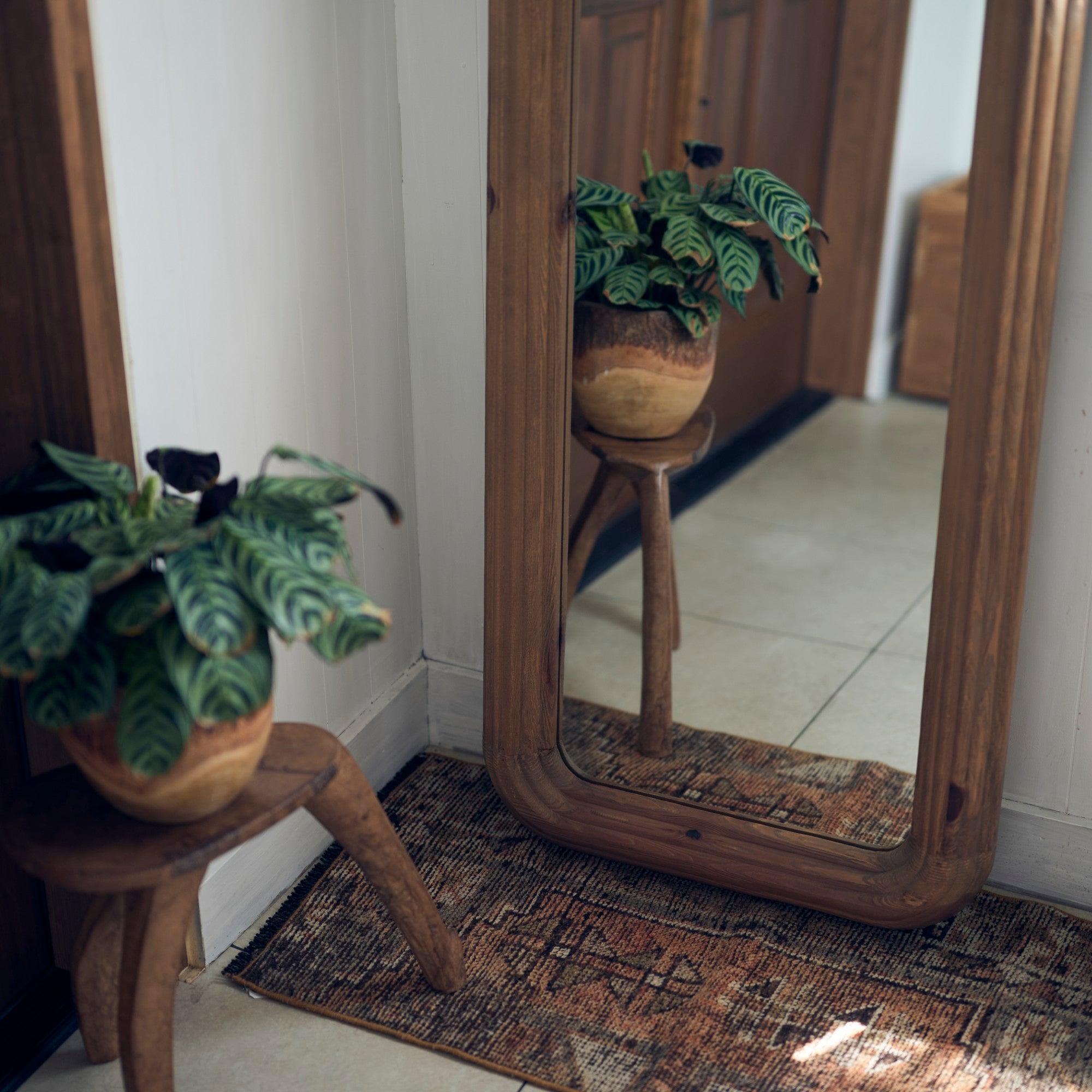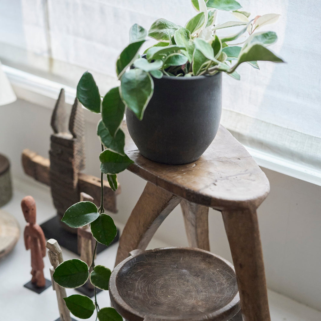 植物やラタン、無垢材など、自然素材と組み合わせると、木彫の表情がいっそう引き立ちます。