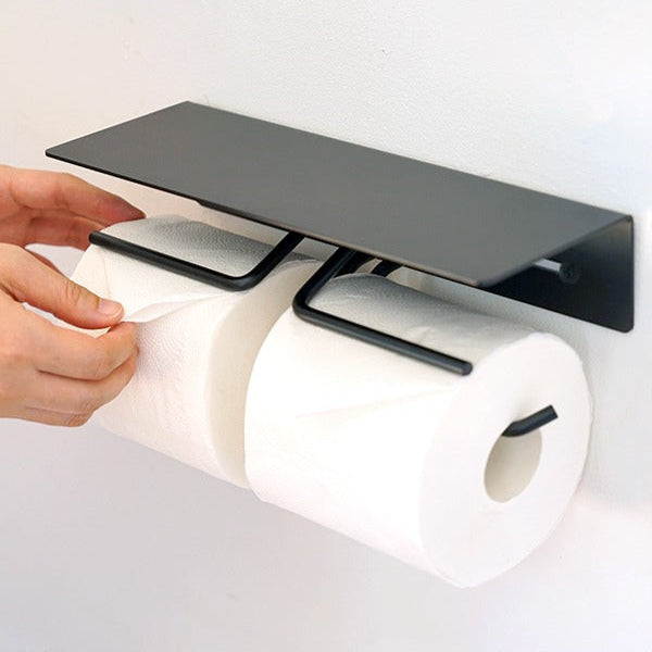 ペーパーの取り替え頻度を減らせるダブルタイプ。上部の棚スペースは、スマホや小物を一時的に置ける配慮。機能性と美しさを両立させ、トイレをひとつの心地よい空間へと導きます。