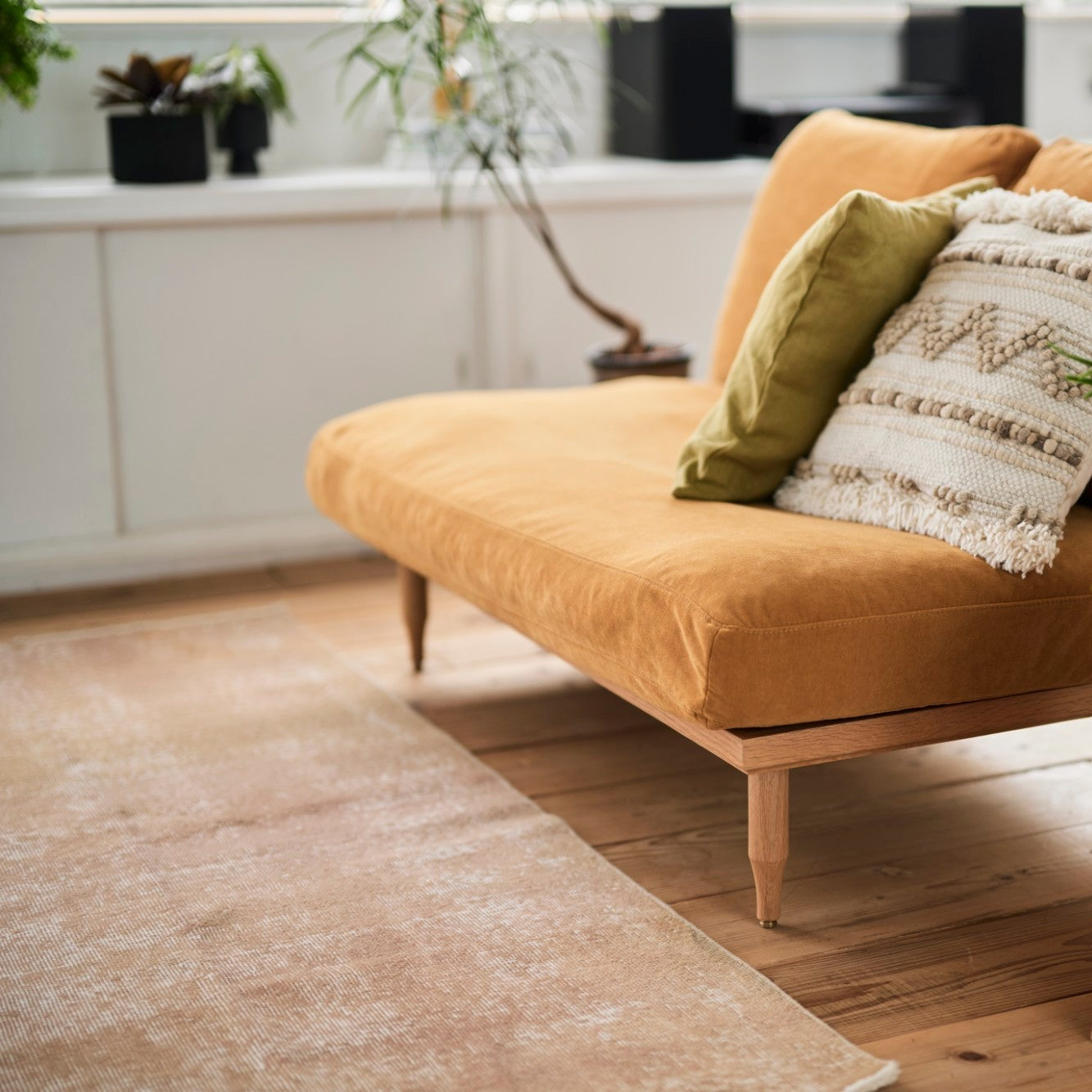 ごく短い毛足とざらっとした手触りは、お手入れの簡単さと使い心地の良さを両立しており、定期的な掃除機でのお手入れと時々のブラッシングや陰干しだけで美しい状態を長く保てます。
