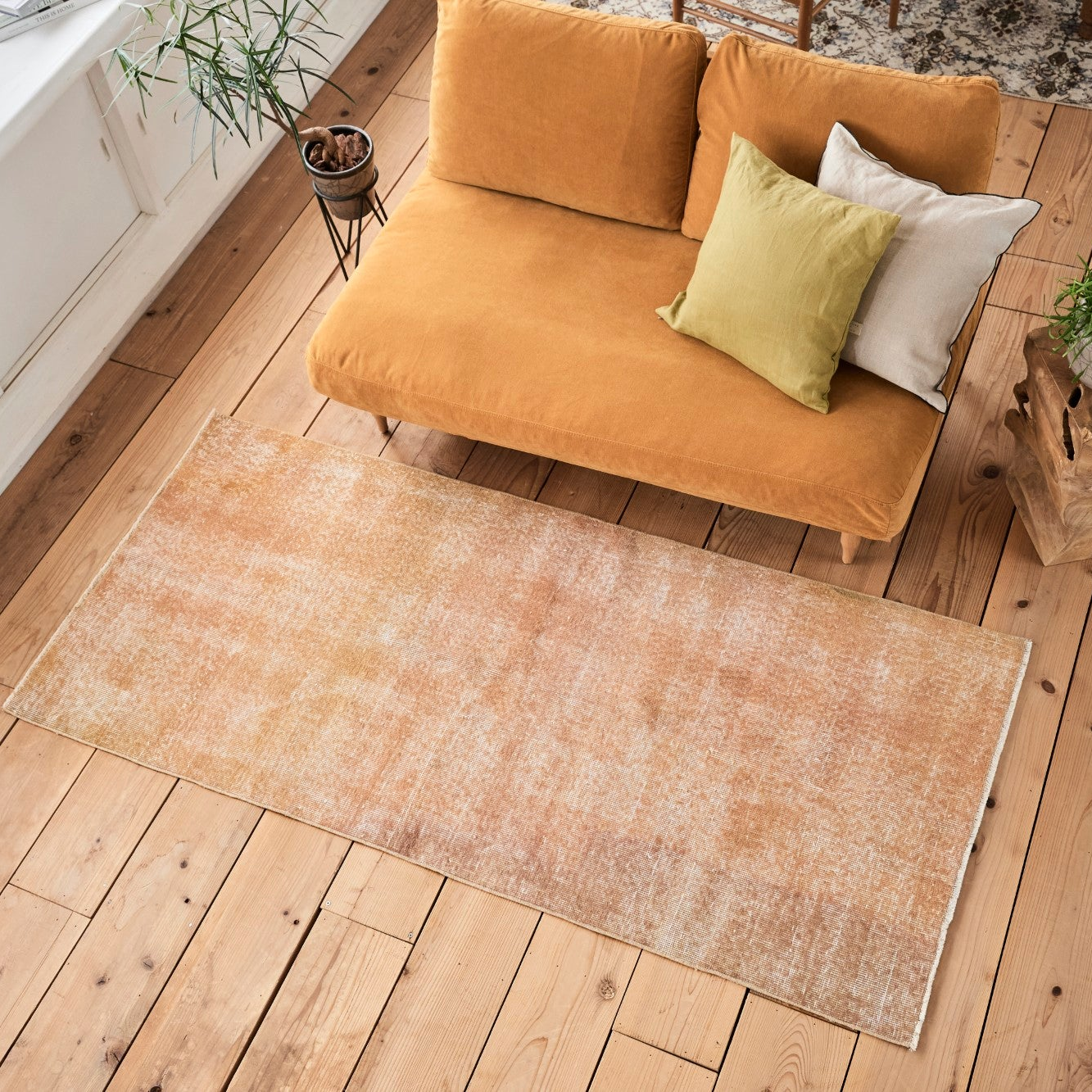 朝陽のようなぬくもりをたたえた、イスパルタの無地ヴィンテージラグ