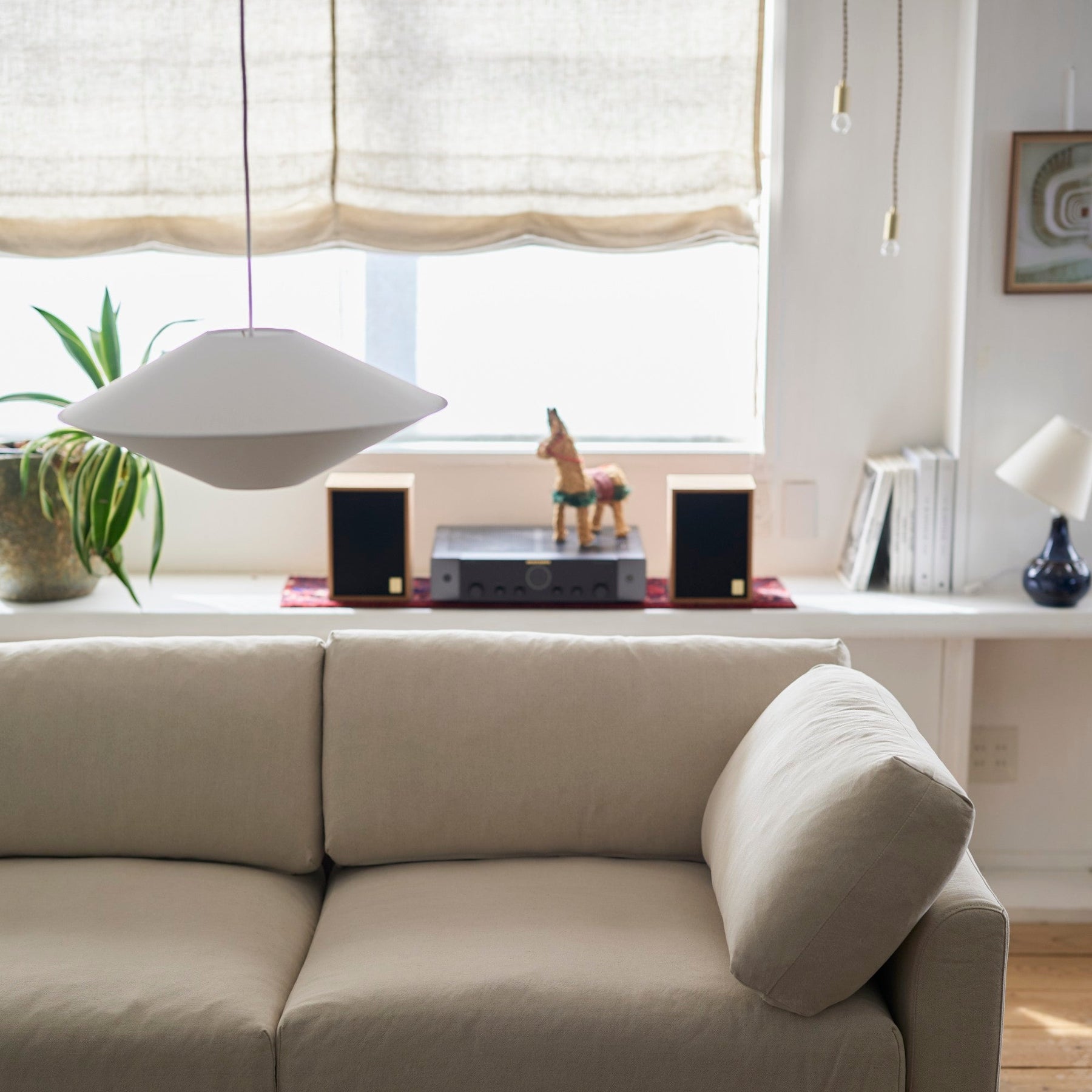 オーディオ機器というよりも、美しい家具のように空間に溶け込む存在です。