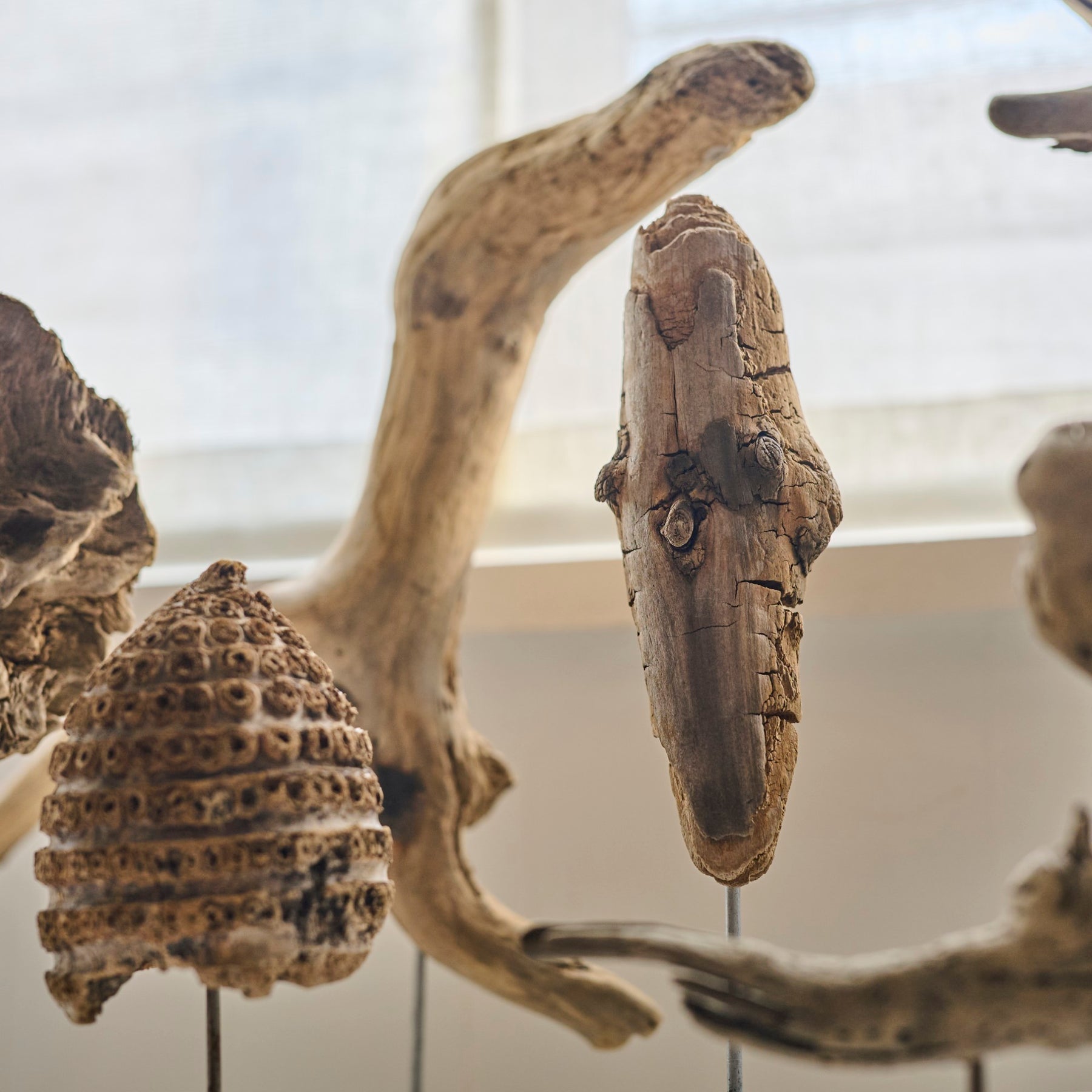 日本各地の海に流れ着いた漂着物を素材とし、上部のオブジェはそのままの形状をアートに昇華。