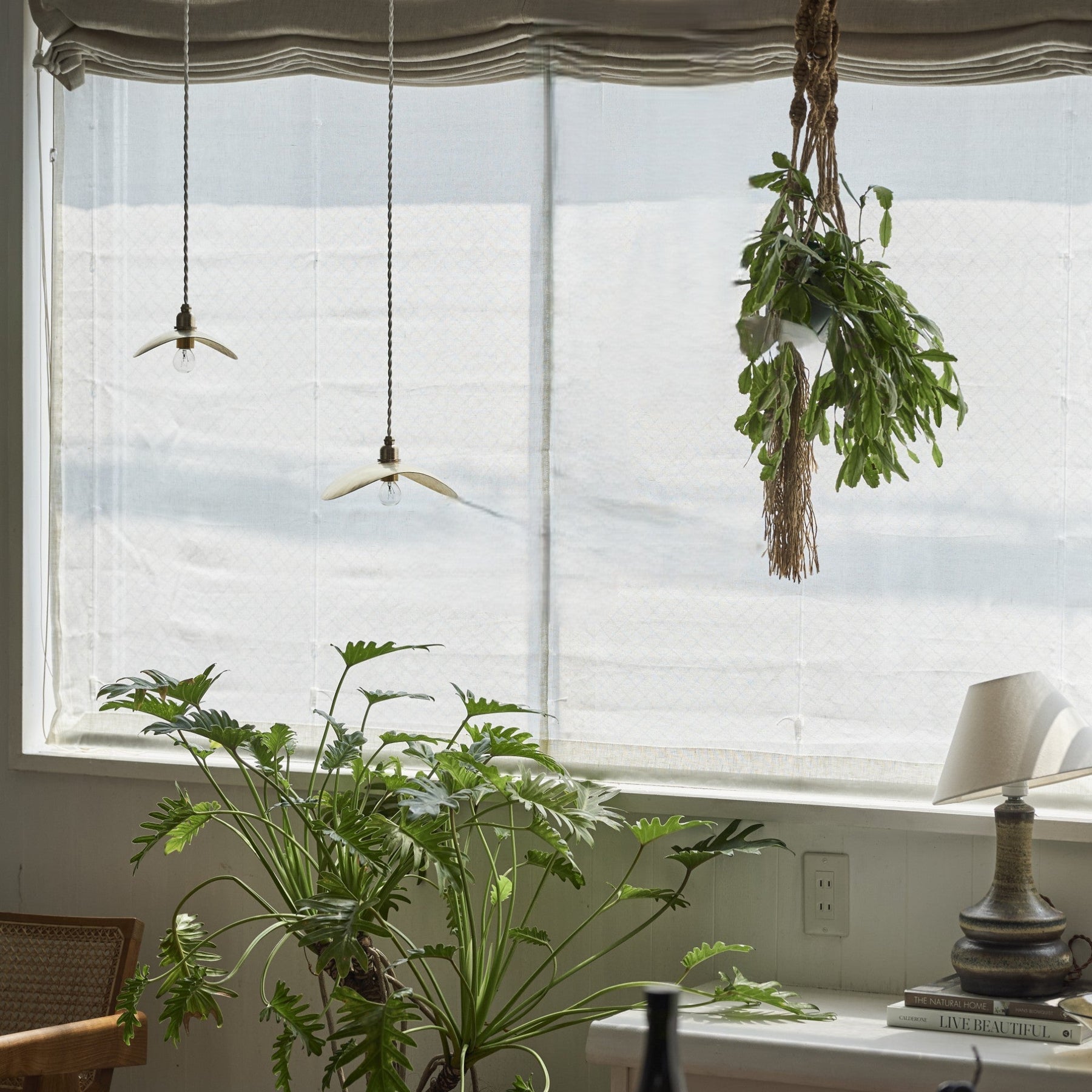 1灯だけでもその佇まいは美しいのですが、サイズ違いで2灯吊るしてみると、蝶の親子がふわふわと楽しそうに舞うような、愛らしい風景が生まれます。