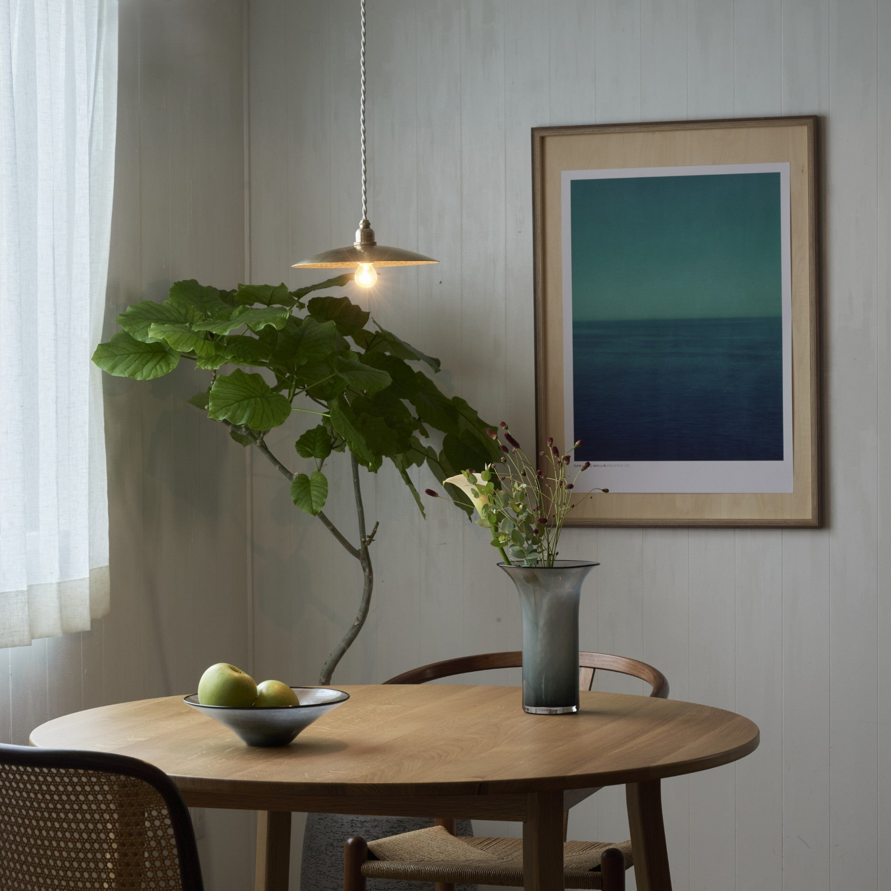 浅く広がるシェードは、光を一点に集めず、やわらかに拡散させる設計。