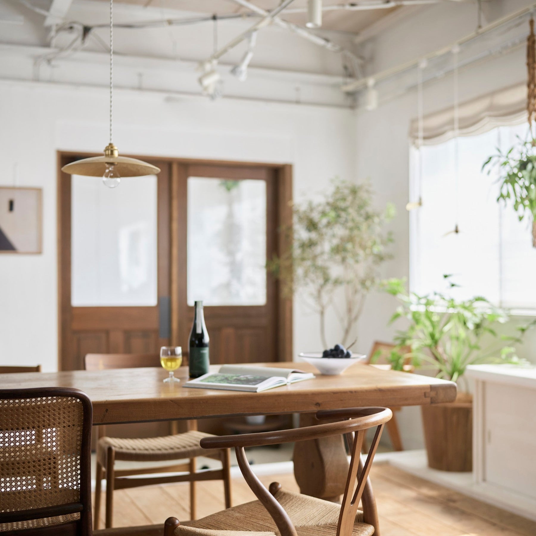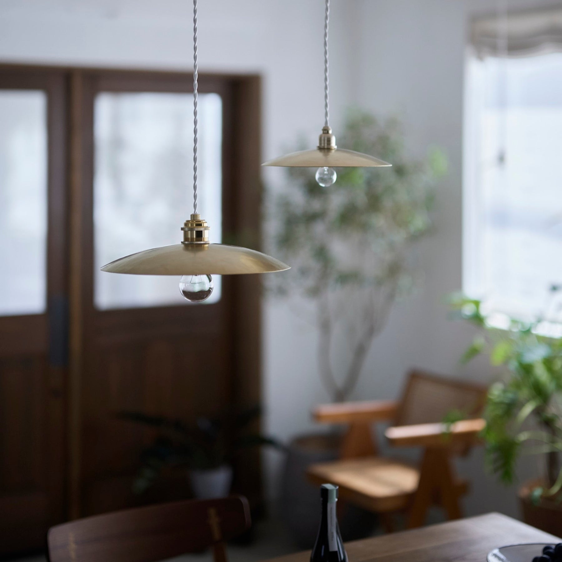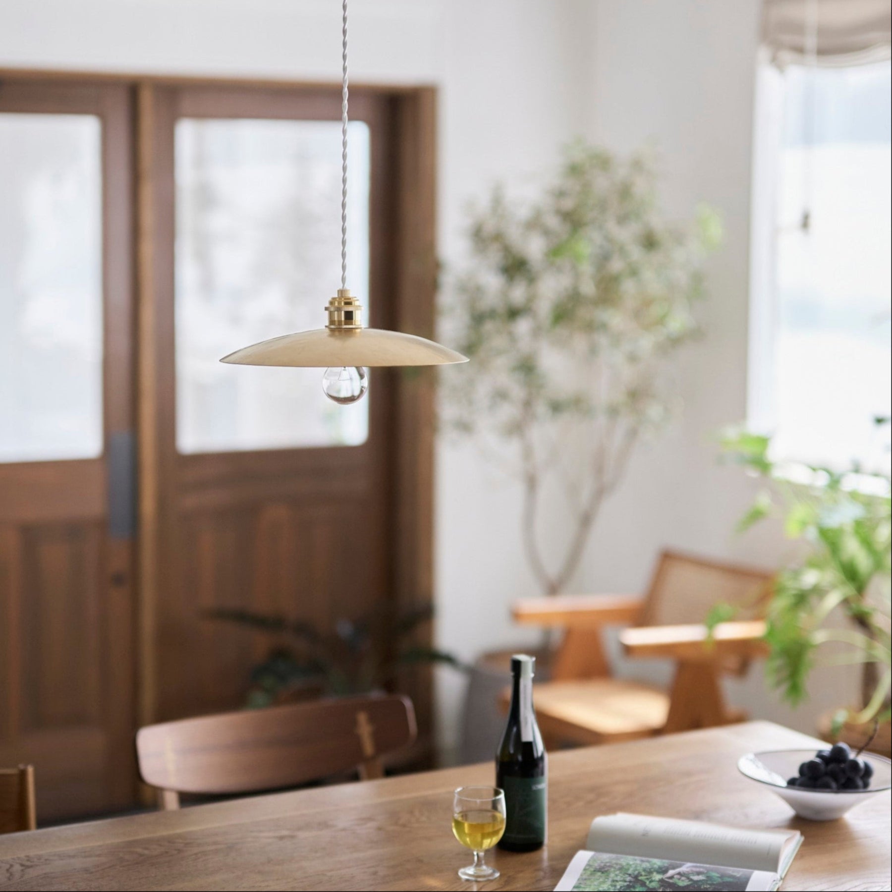 真鍮そのものの色合いを生かしたシェードは、明るく軽やかな輝きをまとい、空間にやさしい表情を添えてくれます。