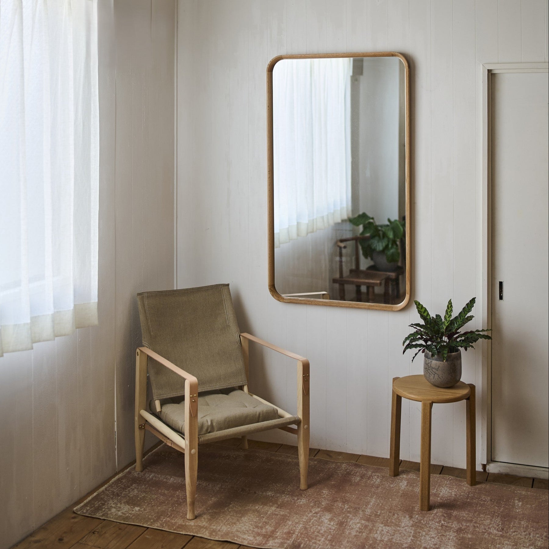 直線的な姿見が多い中で、ふっくらとした曲線が加わることで、空間にやわらかな余白が生まれます。