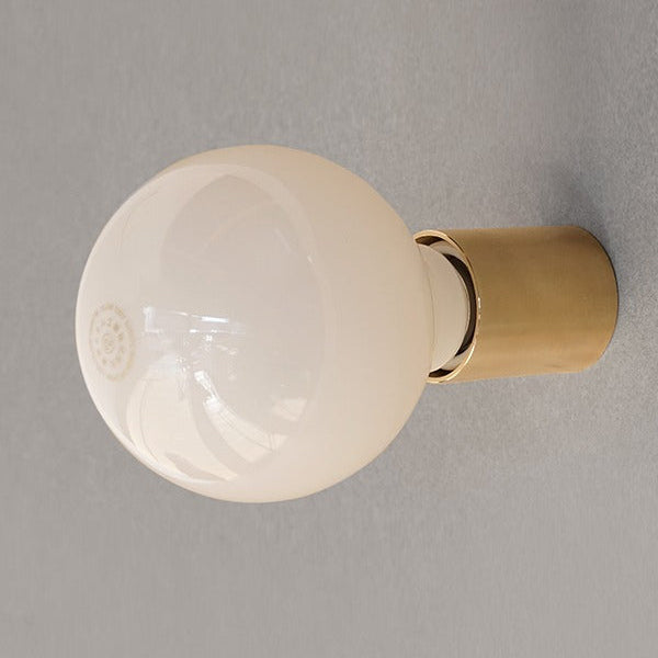 柔らかな光を放つ乳白色のガラスが、真鍮の質感をやさしく照らし出します。