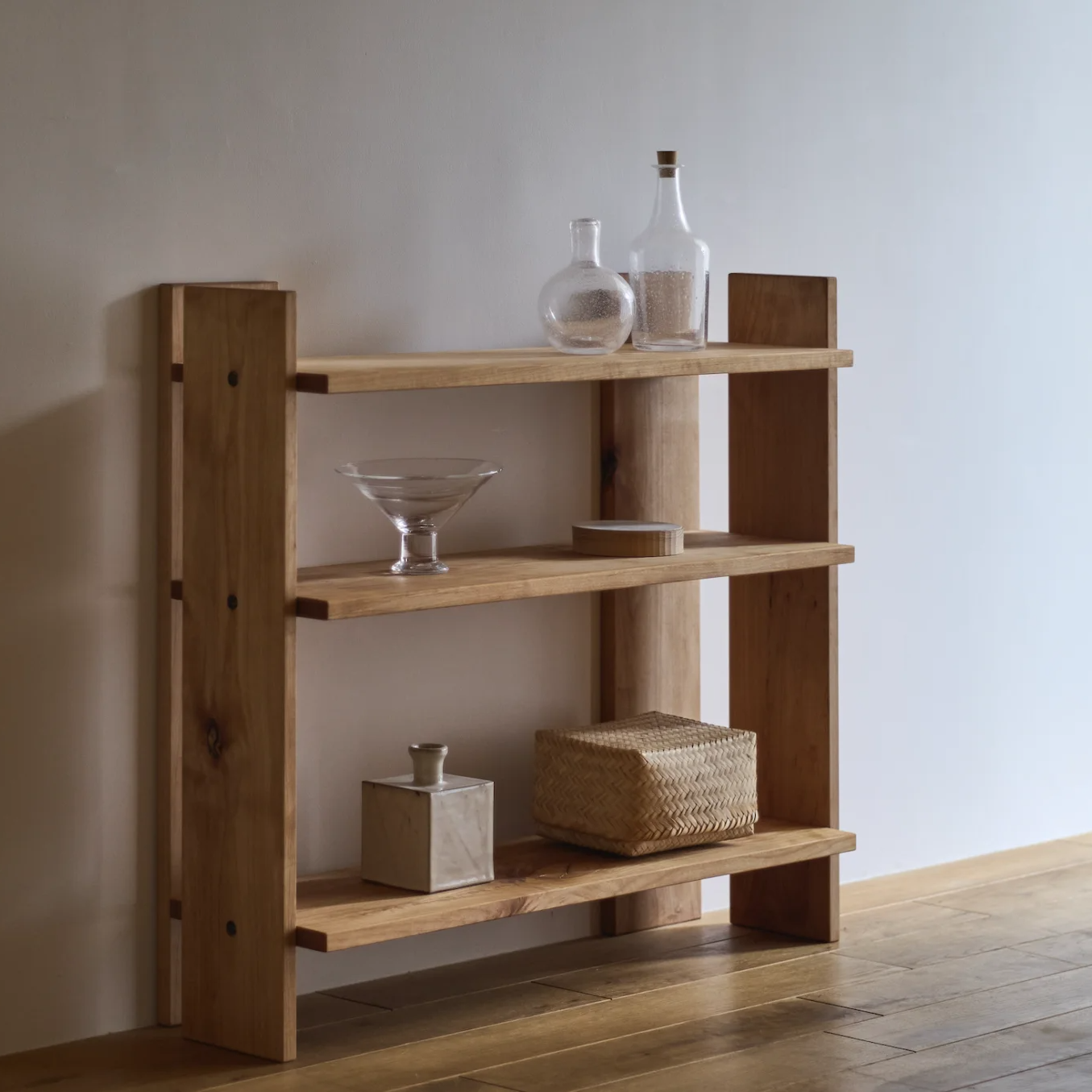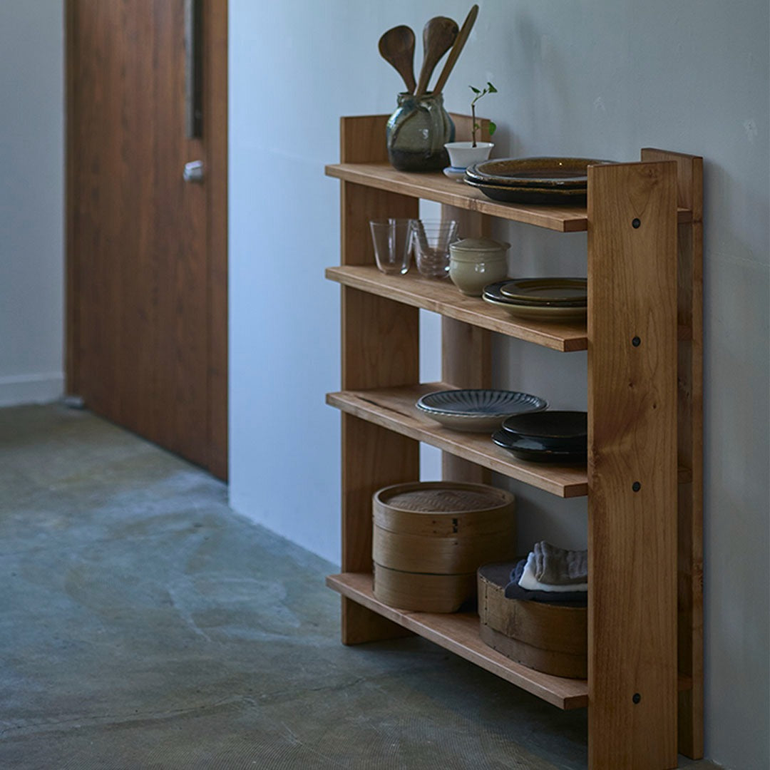 最小限の要素だけで構成された、背板のないオープンシェルフです。