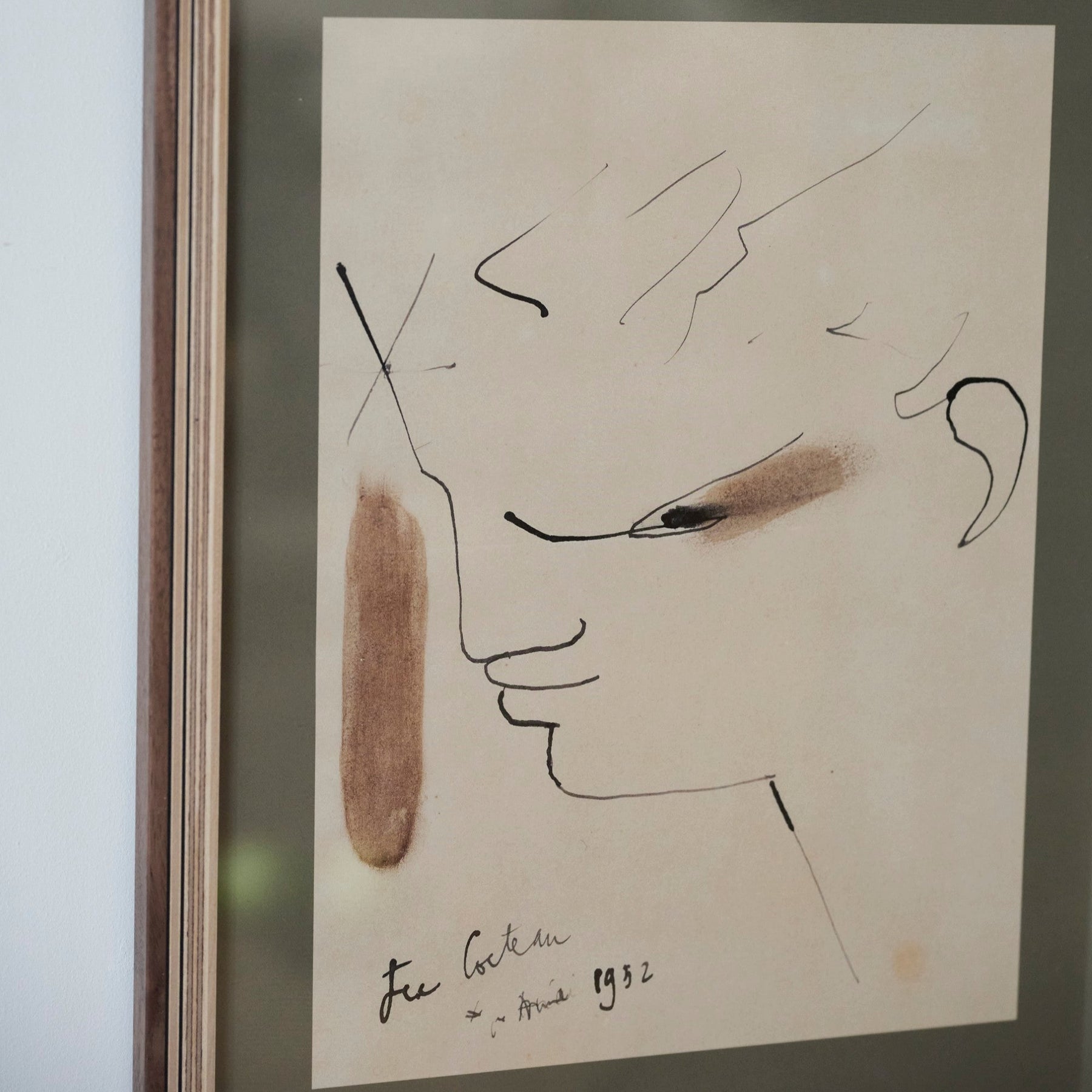 フランスの巨匠 Jean Cocteau(ジャン・コクトー)が1952年に描いた「ジャン・マレーの肖像」と、FLANGE plywood のウォールナットフレームを組み合わせた特別なアートセットです。