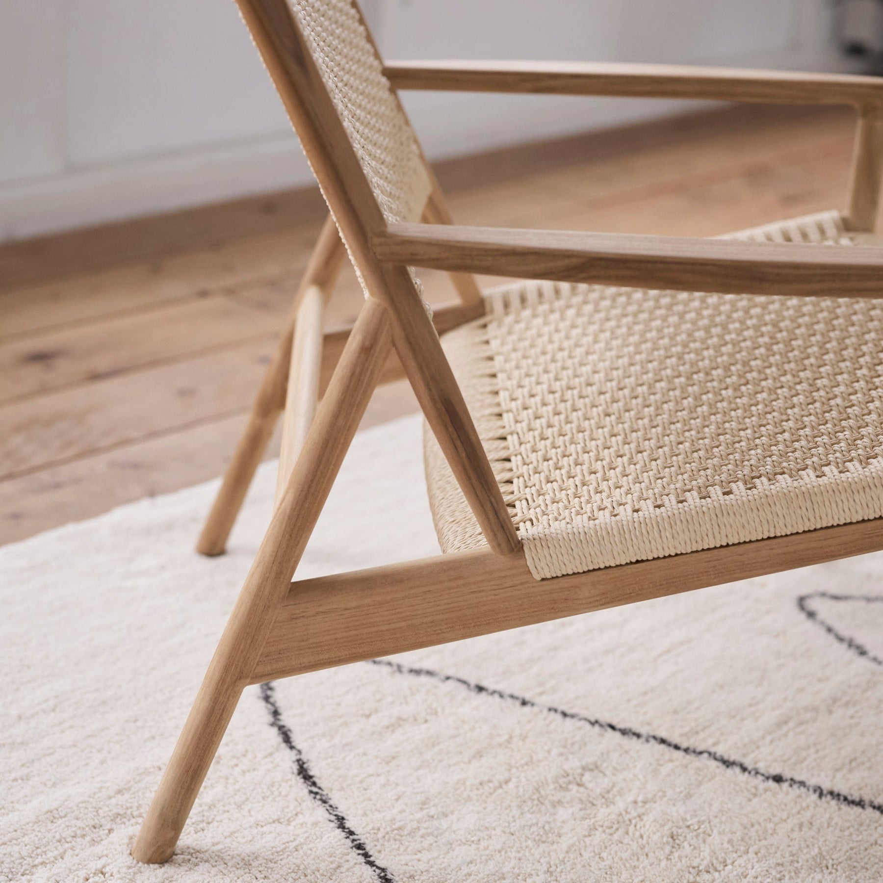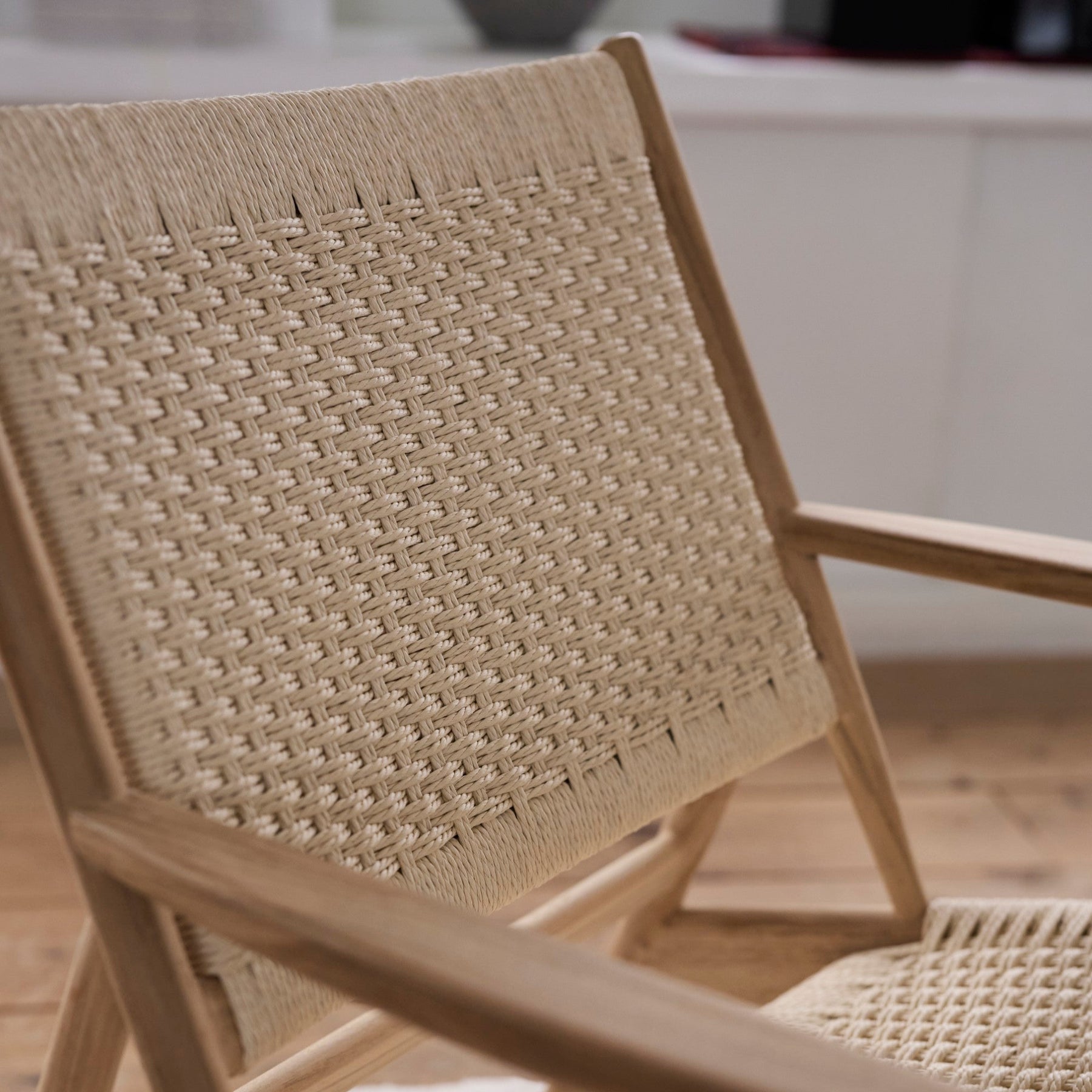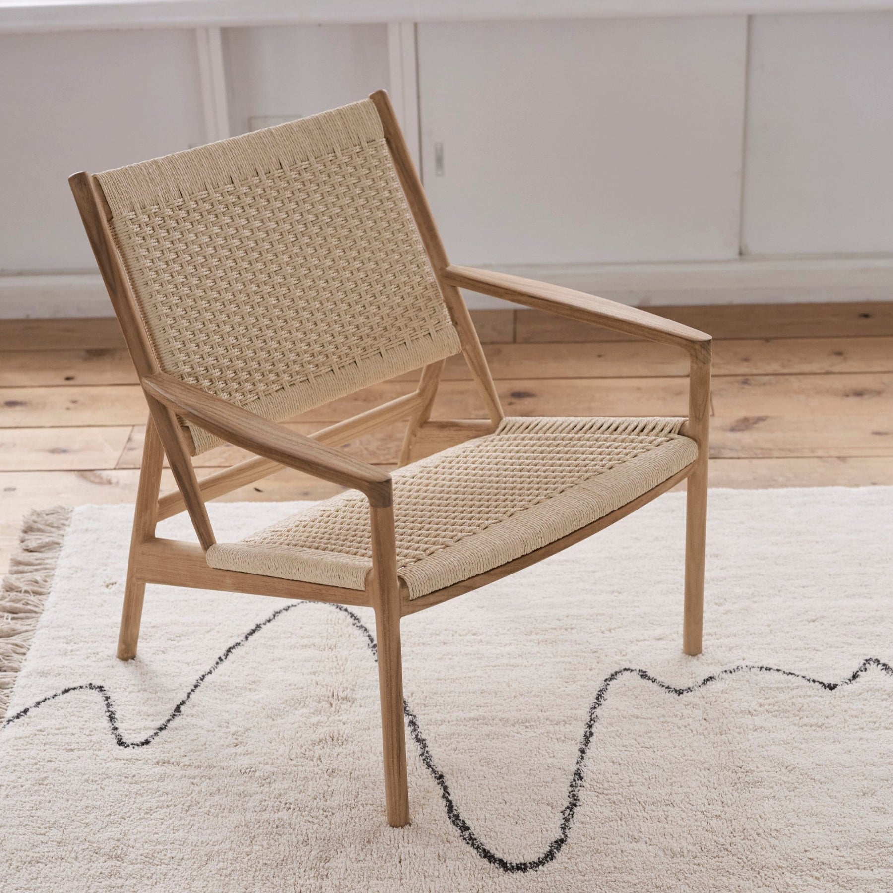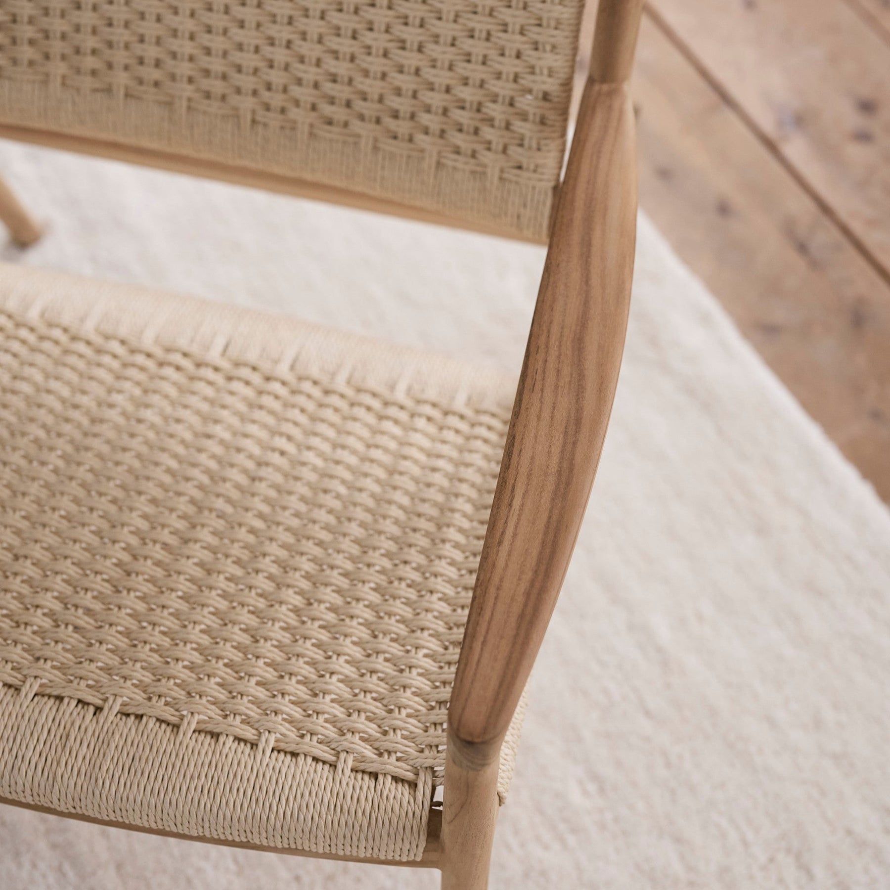 チーク材の力強さと、ペーパーコードの軽やかさ