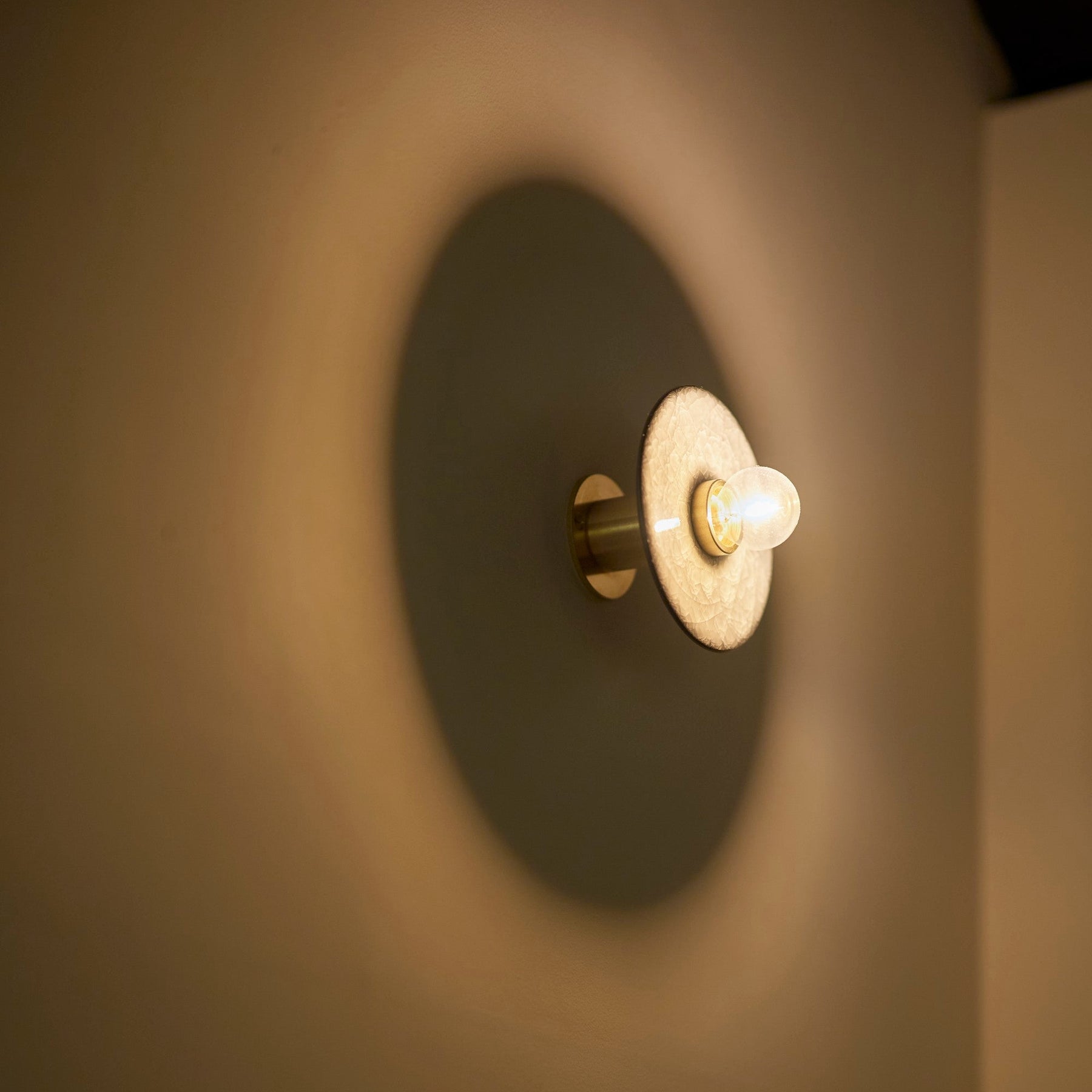 光を灯せば、貫入の線がシェードに浮かび上がり、壁面に独特の陰影を映し出します。