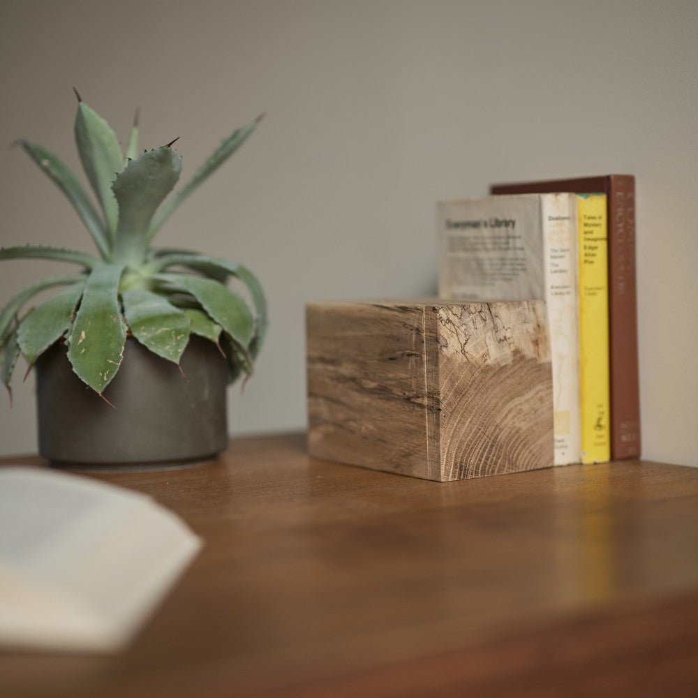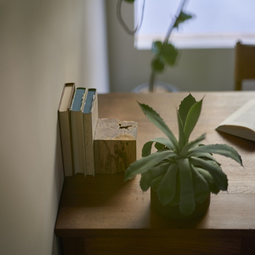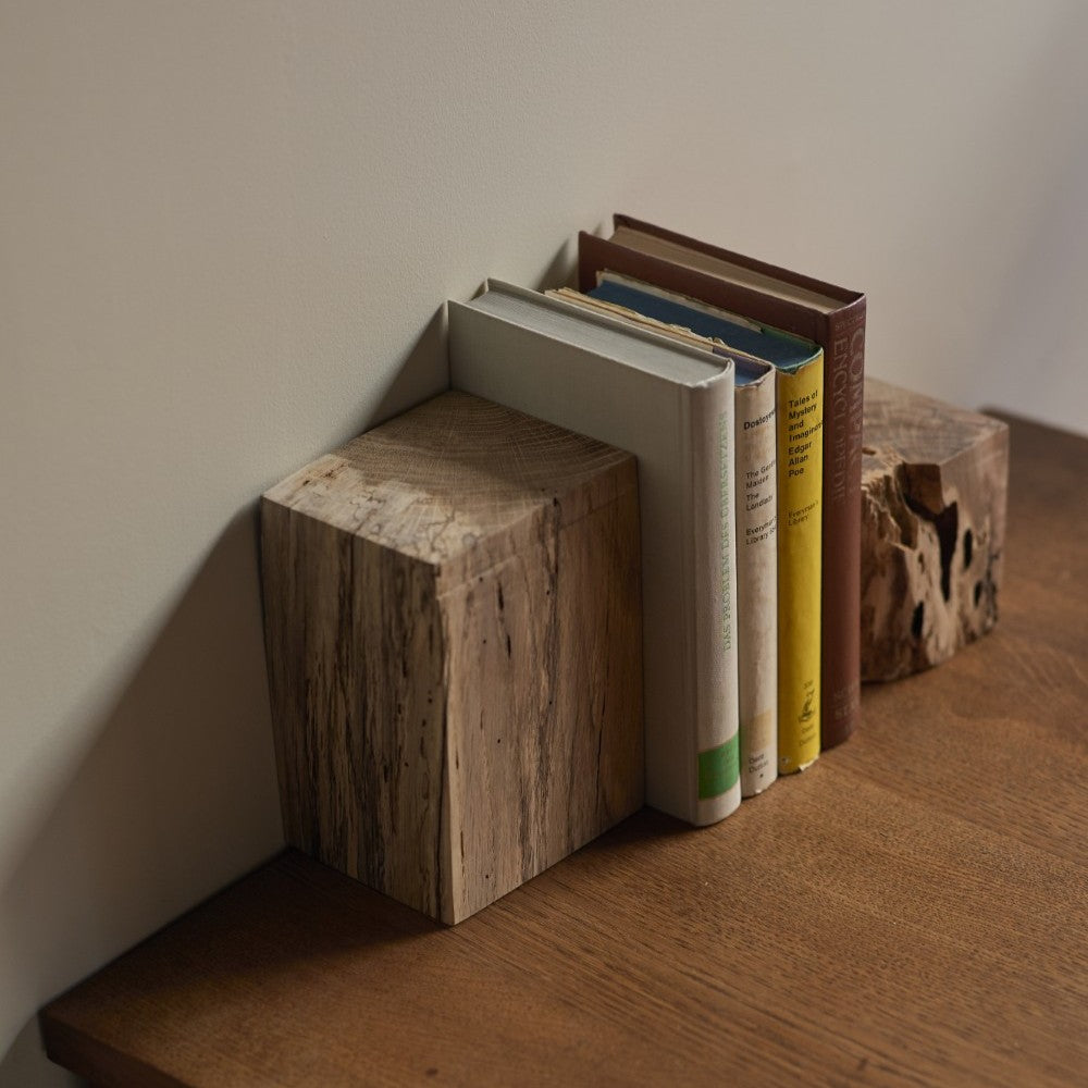 Retreの 虫喰いブックエンド は、木の表情を楽しみながらも、本をしっかり支える機能も備えています。