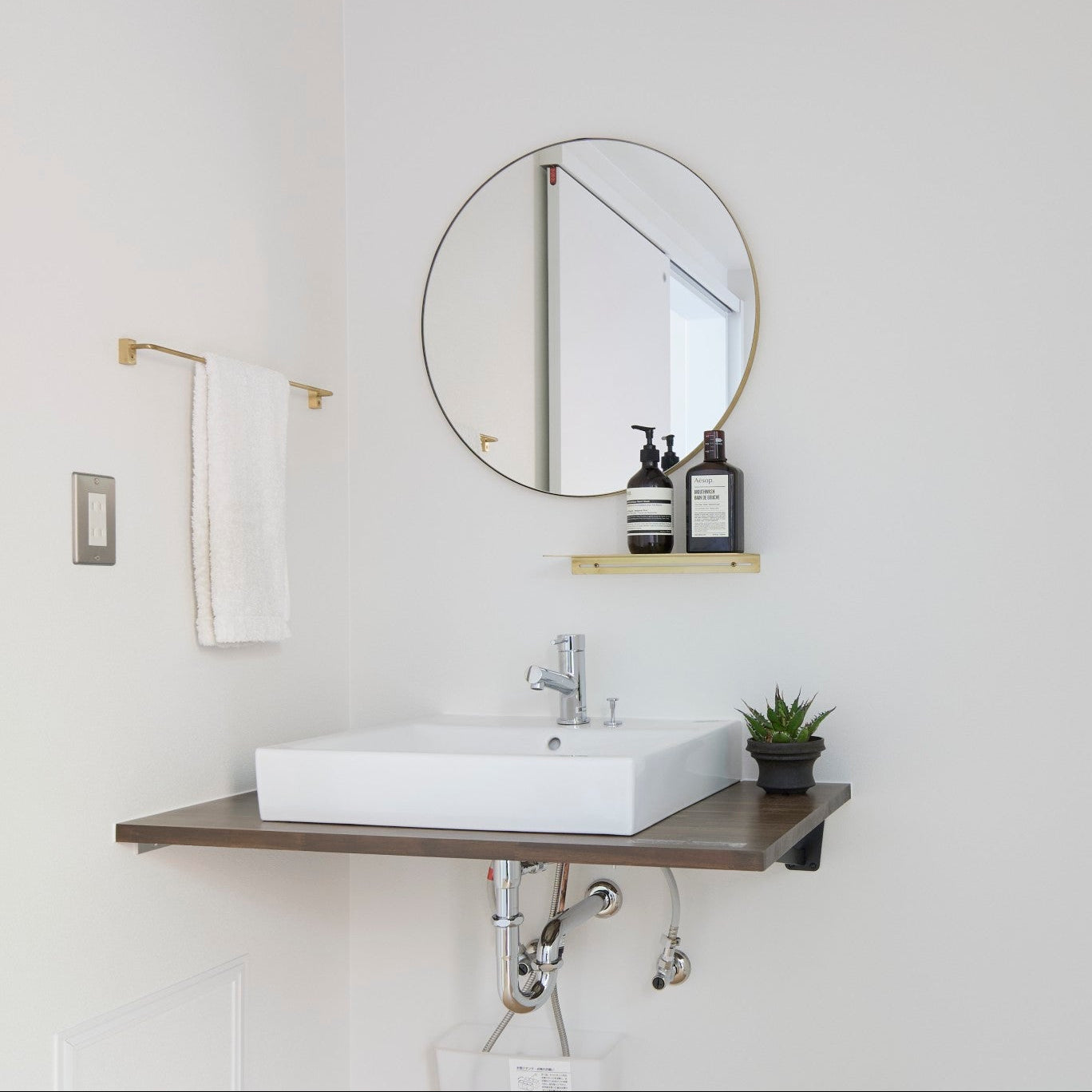 ブラス仕様は、本体から付属のビスまで全て真鍮製で統一され、あたたかみのある金色の輝きが空間に上品な華やかさをもたらします。