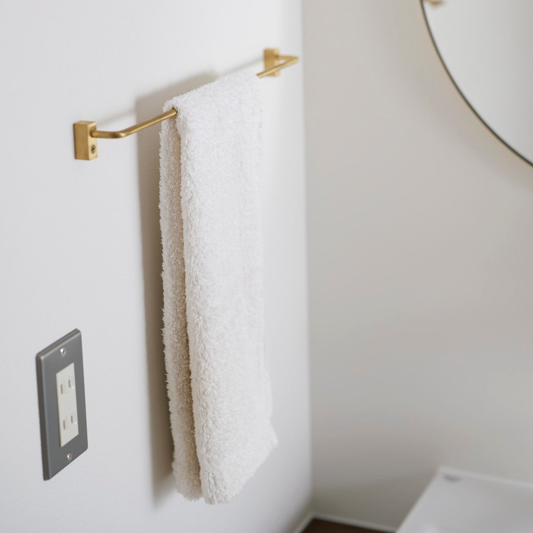フェイスタオルならそのまま美しく、バスタオルでも二つ折りにすれば無理なく掛けることができ、洗面所やお手洗い、キッチンで活躍します。