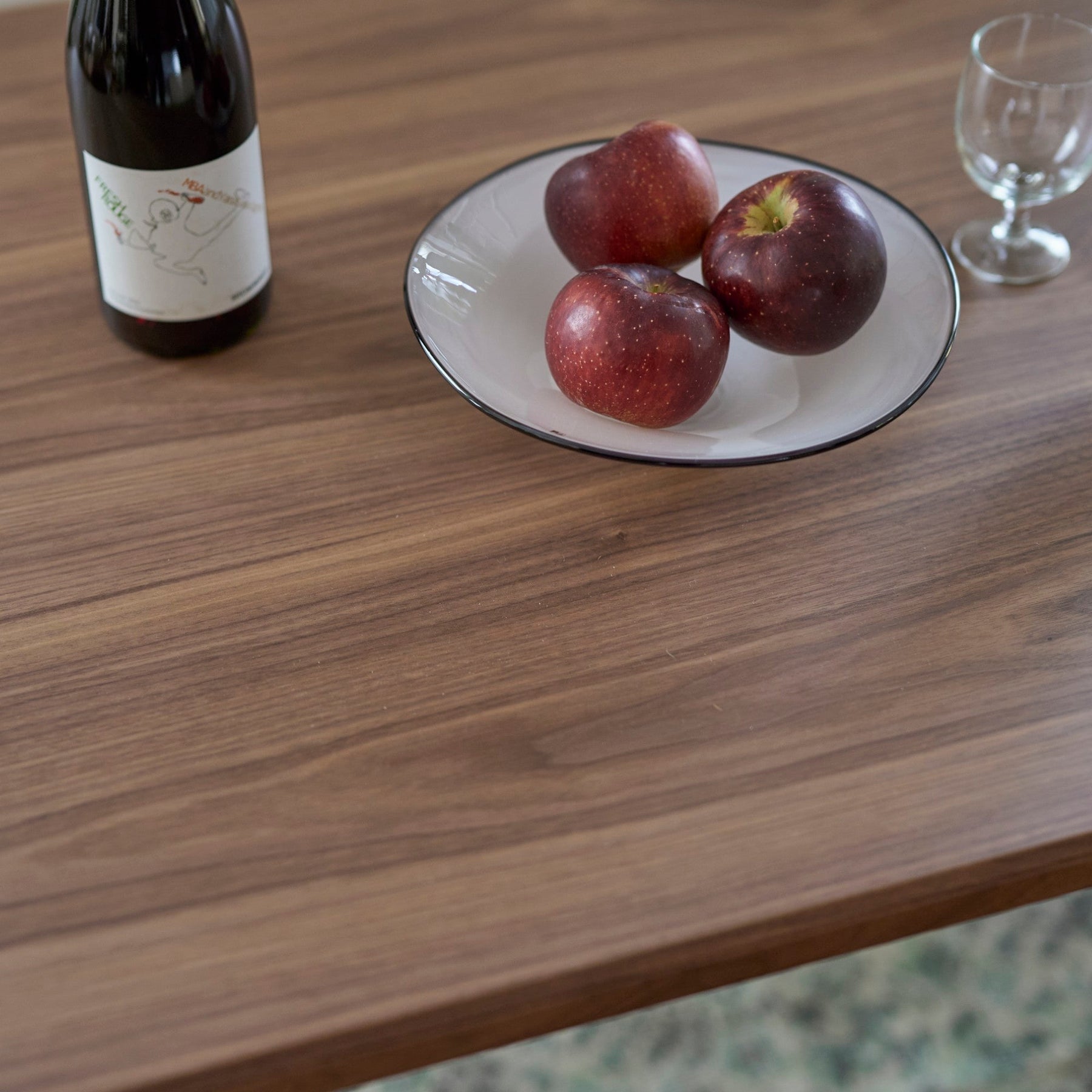 天然木の突板を使った天板は、一枚一枚異なる木目が特徴。