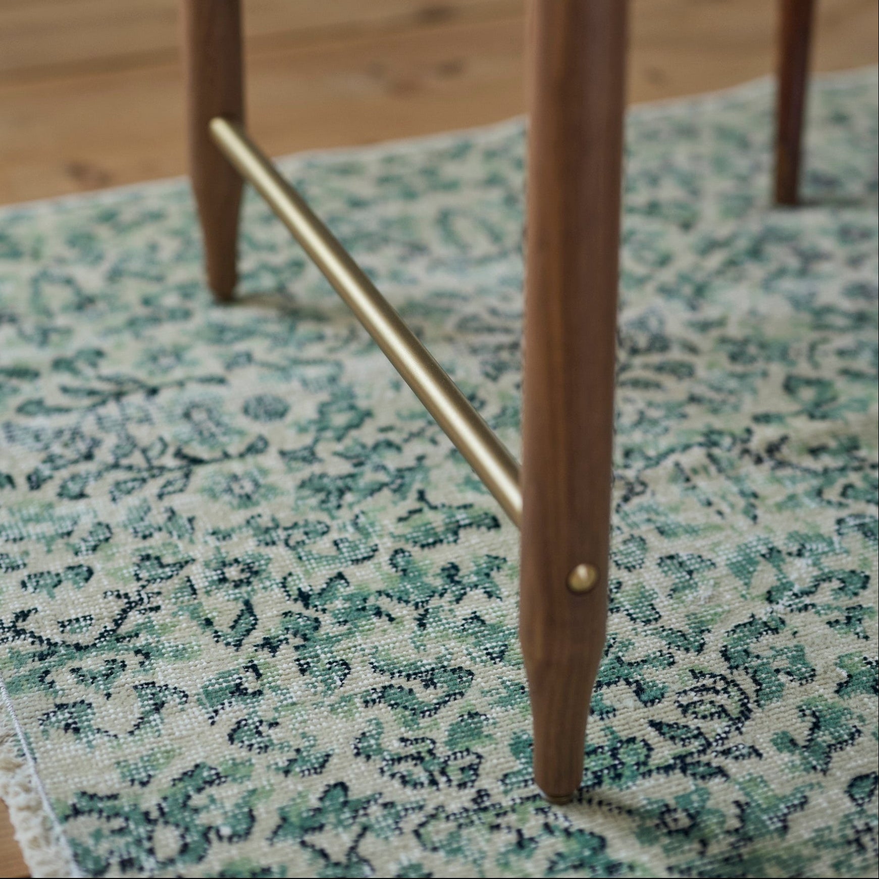 直径9mmの真鍮色スチールパイプが、絶妙なバランスで天板を支えています。