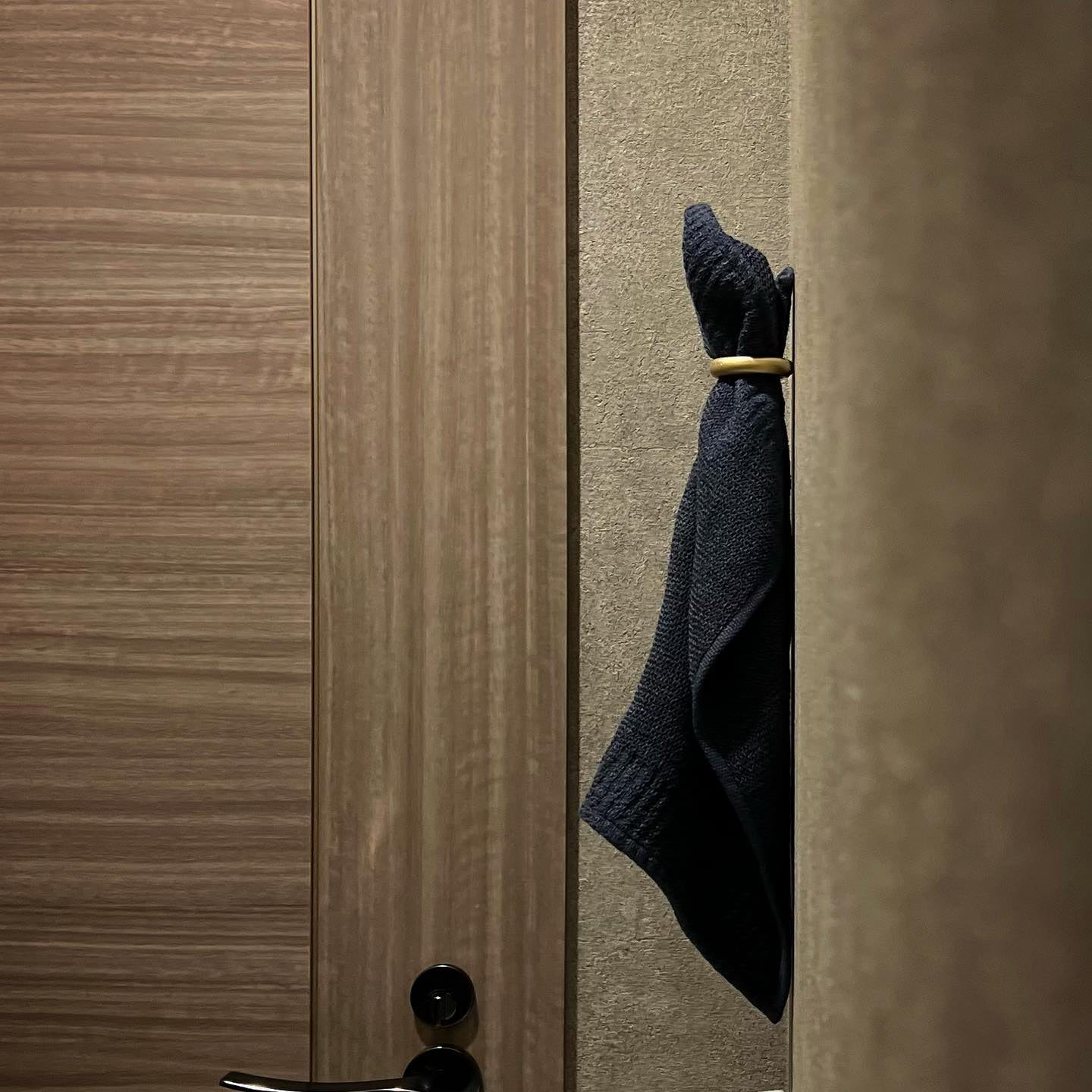 一方、このリング型はタオルを輪に通す、ループを引っ掛ける、紐で吊るす、といった掛け方のバリエーションが生まれます。