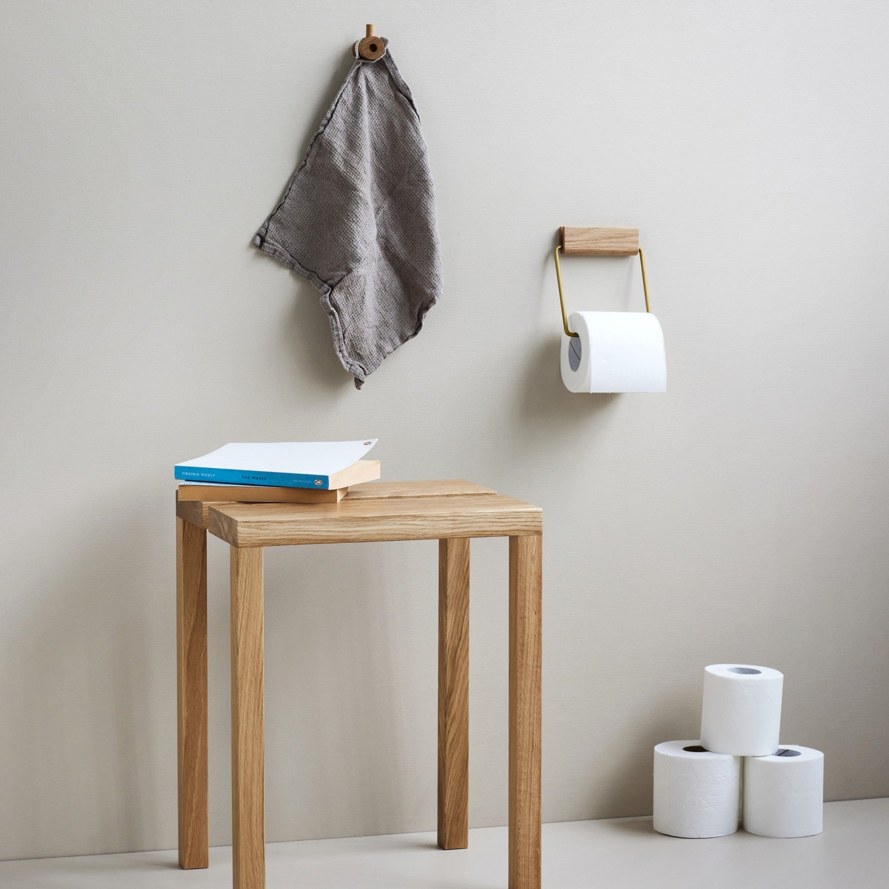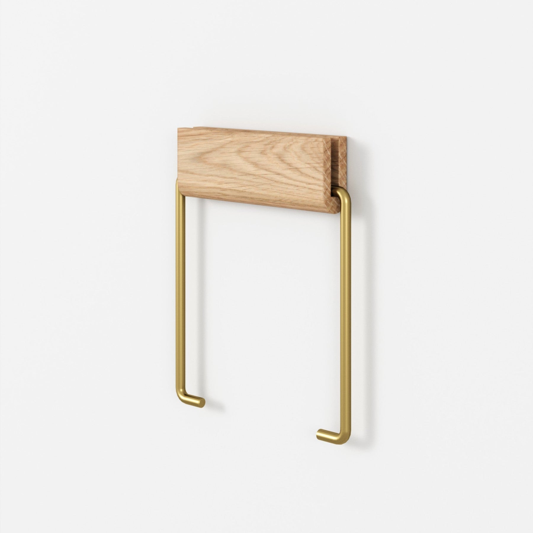天然のオーク材をベースに、ロールを支えるアーム部分に真鍮またはブラックスチールを採用しました。