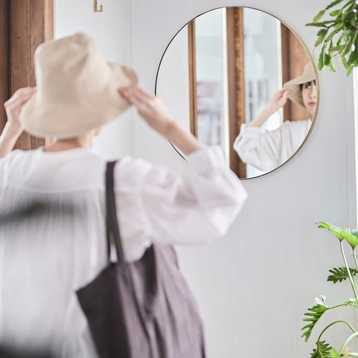Brass ラウンドミラーは、お住まいのスペースや用途に合わせて選べる2つのサイズをご用意しています。