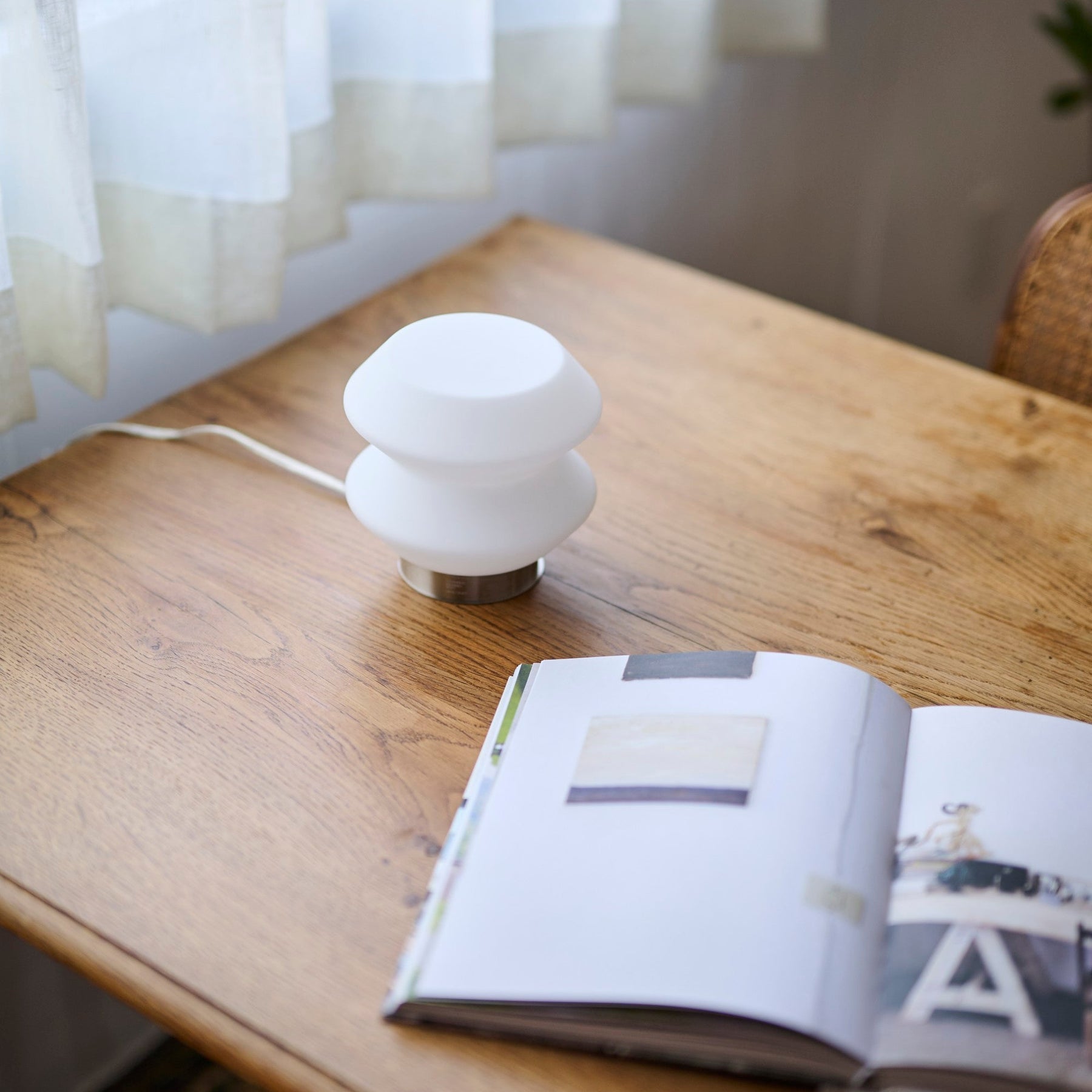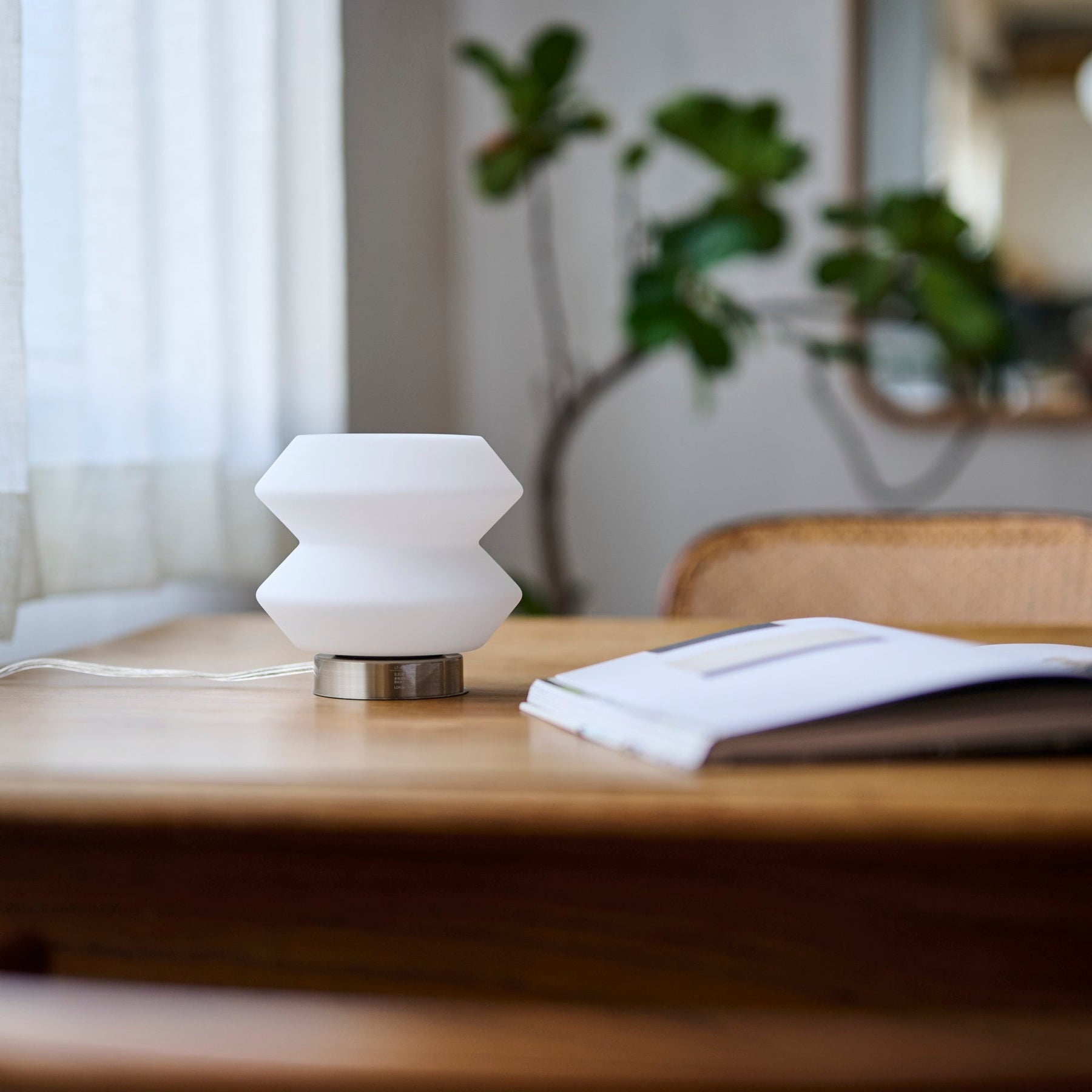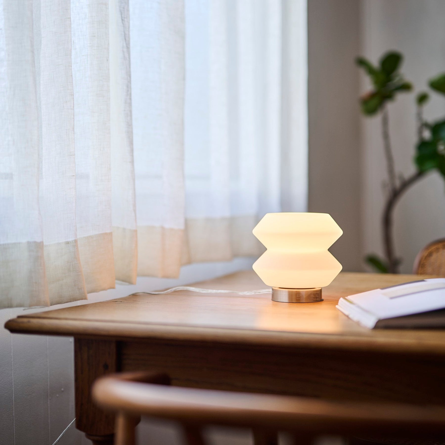 書斎のデスク脇に置けば、パソコン作業の合間にふと目を休めたくなるような、あたたかみのある光が寄り添います。