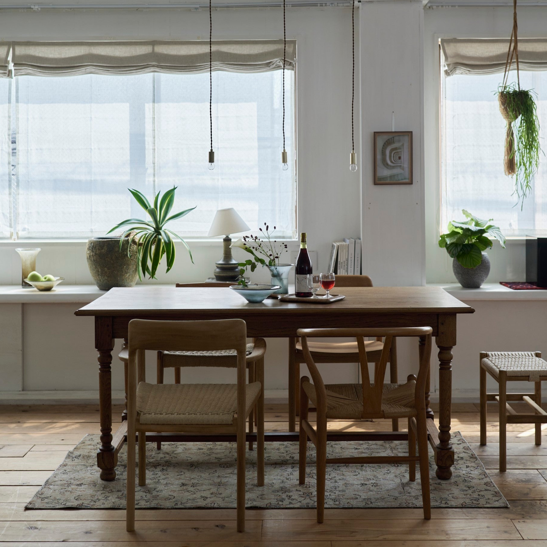 偶然が織りなすグラデーションの美しさは、現代のミニマルな空間にもすっと馴染み、木の床やコンクリートの質感を引き立ててくれます。