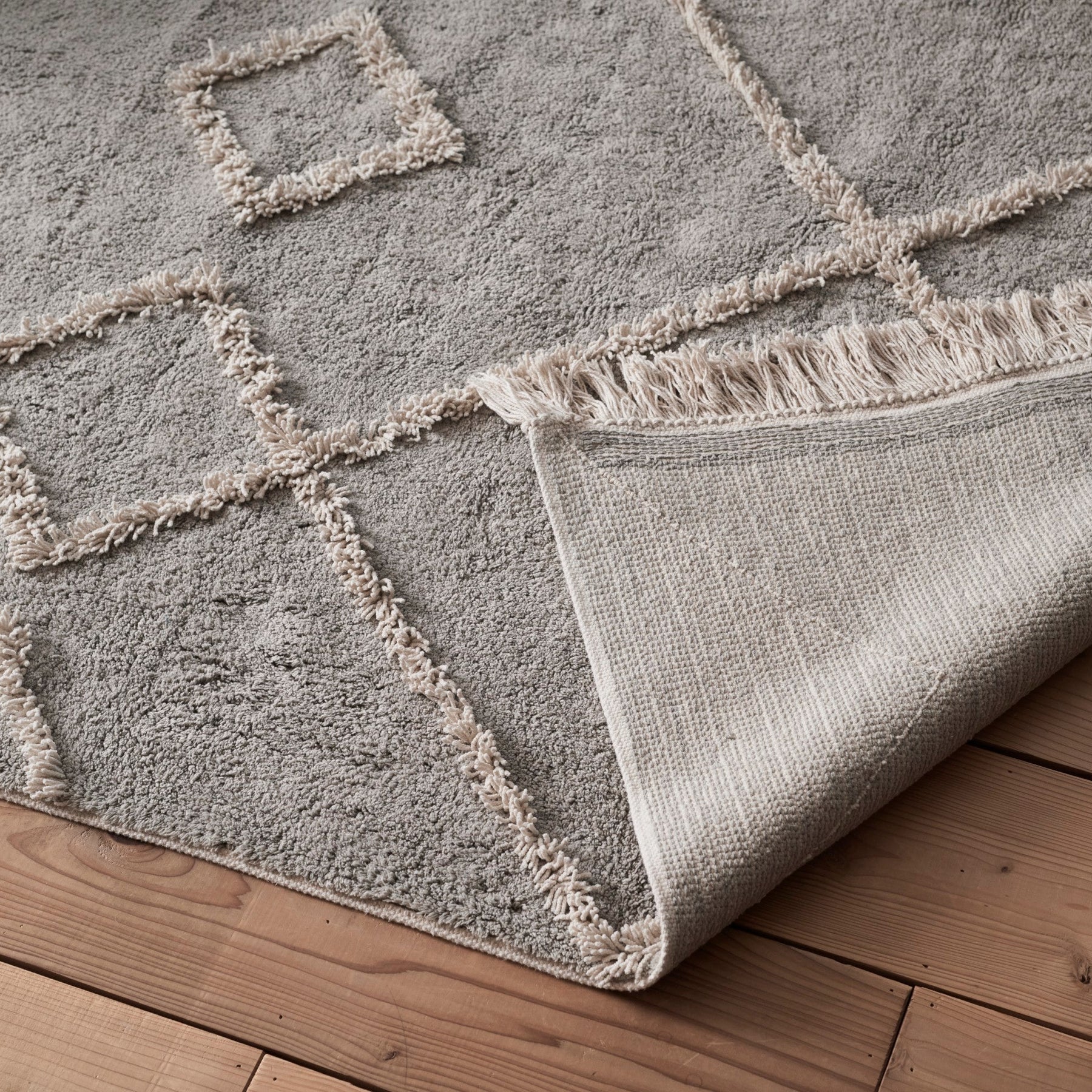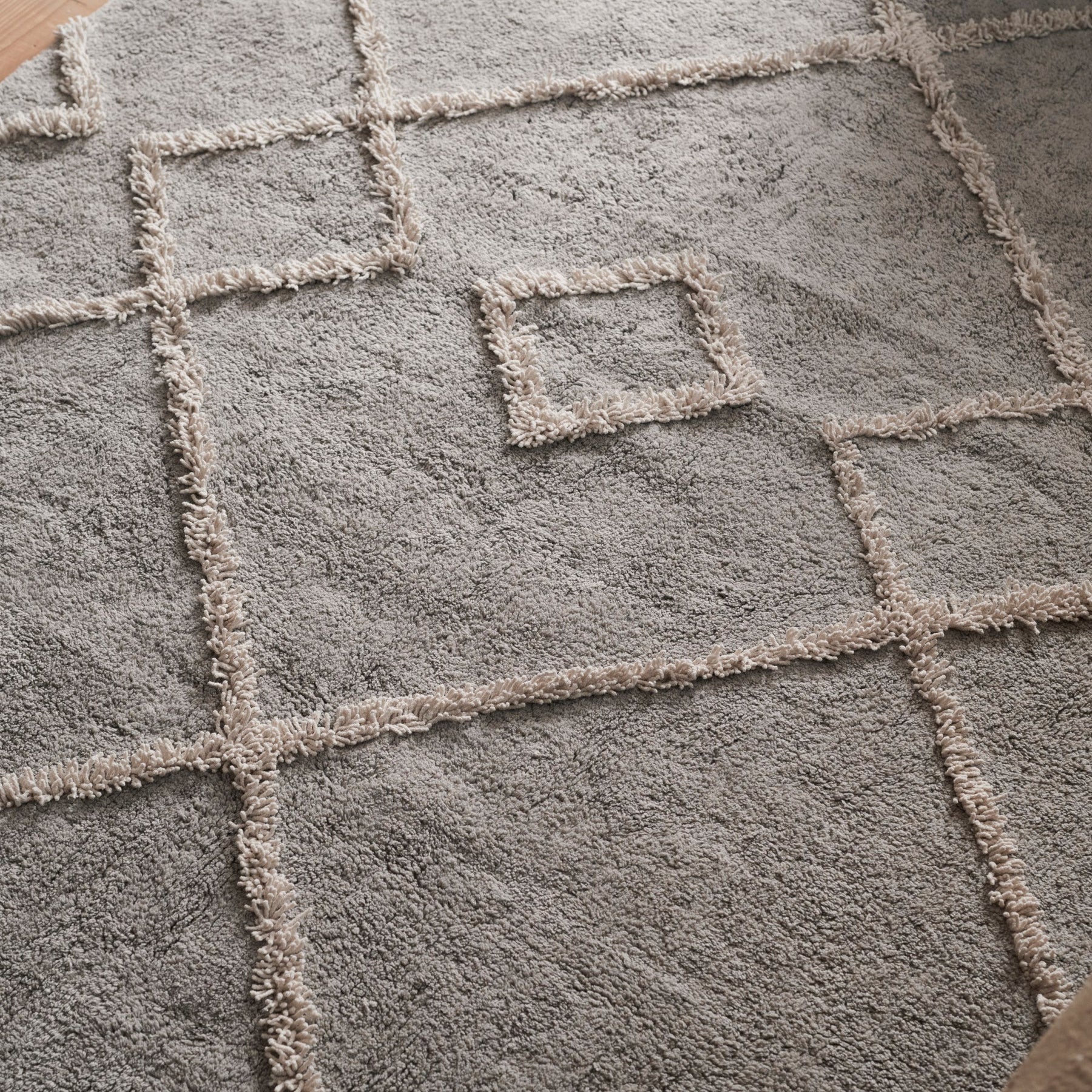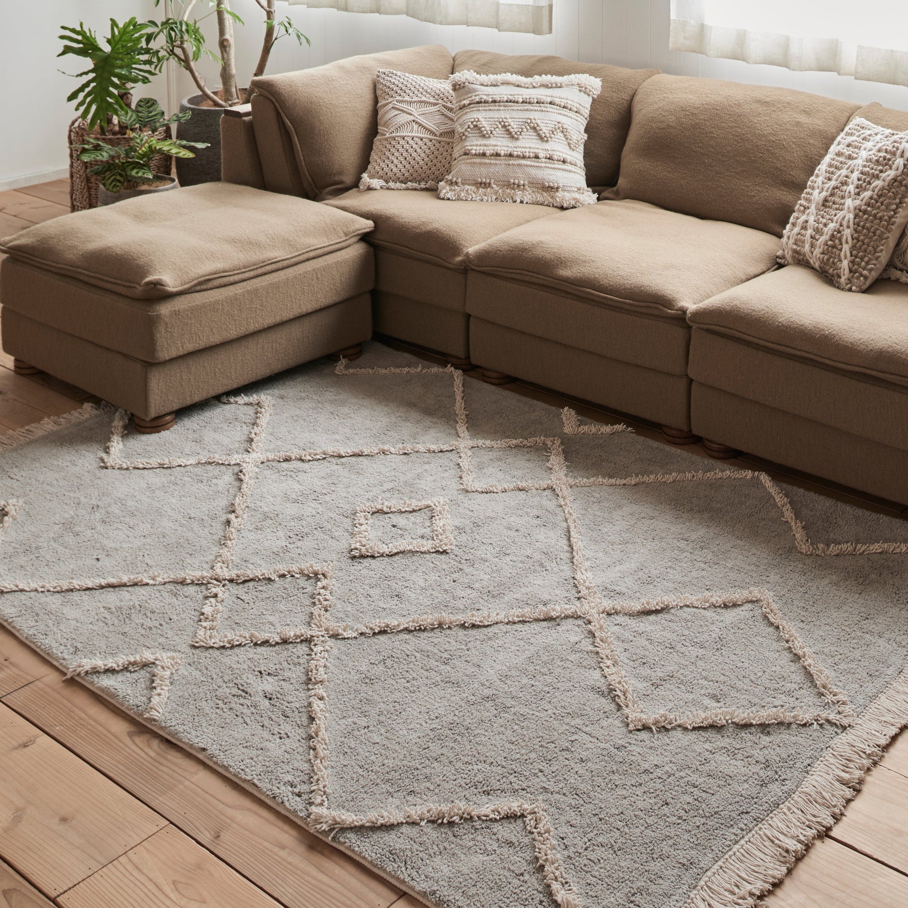 異なる太さのシャギーが織りなすモロッコ調のデザインは、どんなインテリアにも自然と馴染みます。